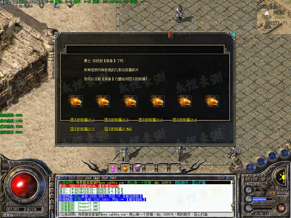11.土城左边新增NPC团子的祝福,可以用装备,空气,东西,药来兑换称号