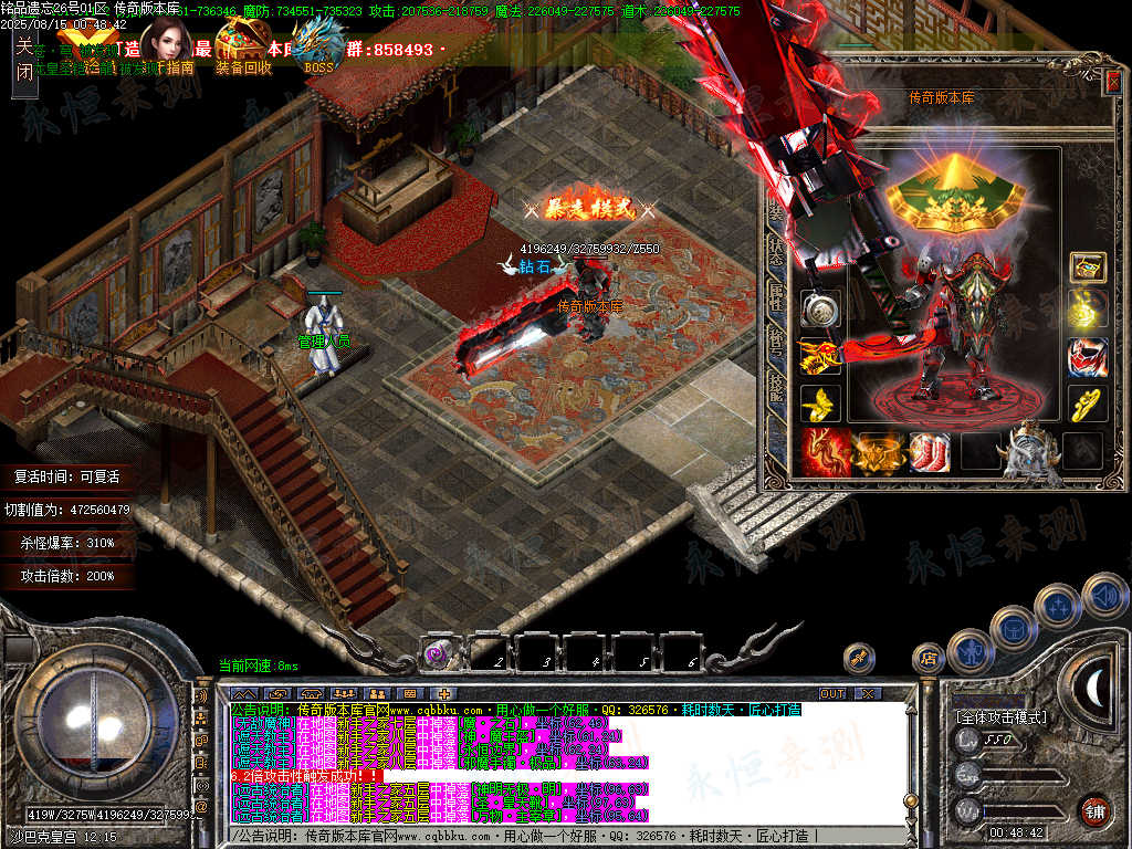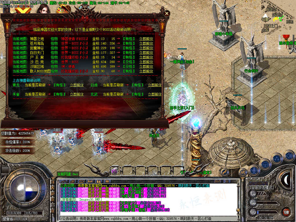 【游戏介绍】:新增特色地图,适合散人打宝,组队混终极装备!散人不花钱一样混的好。