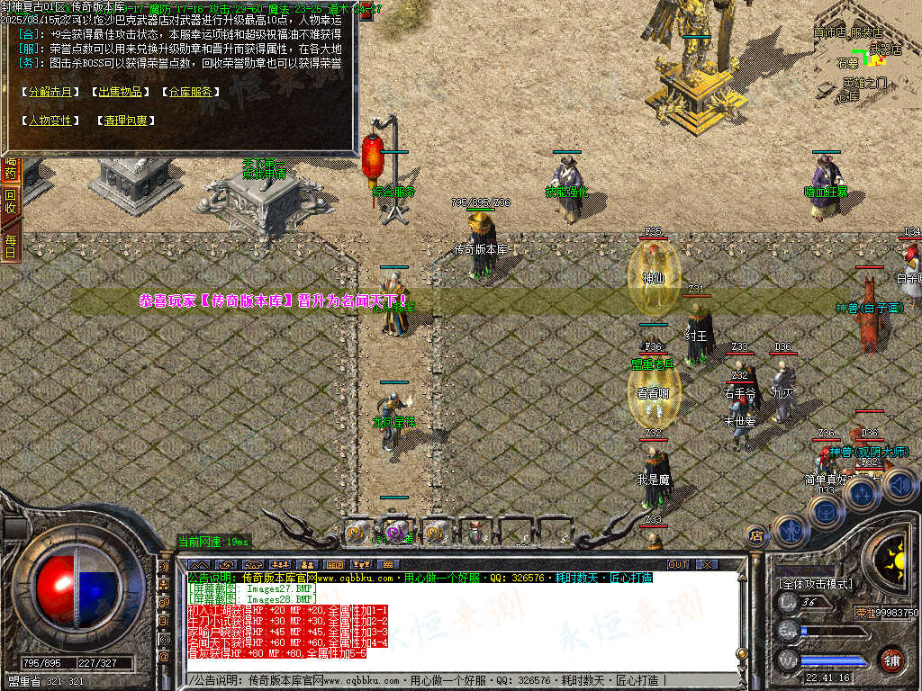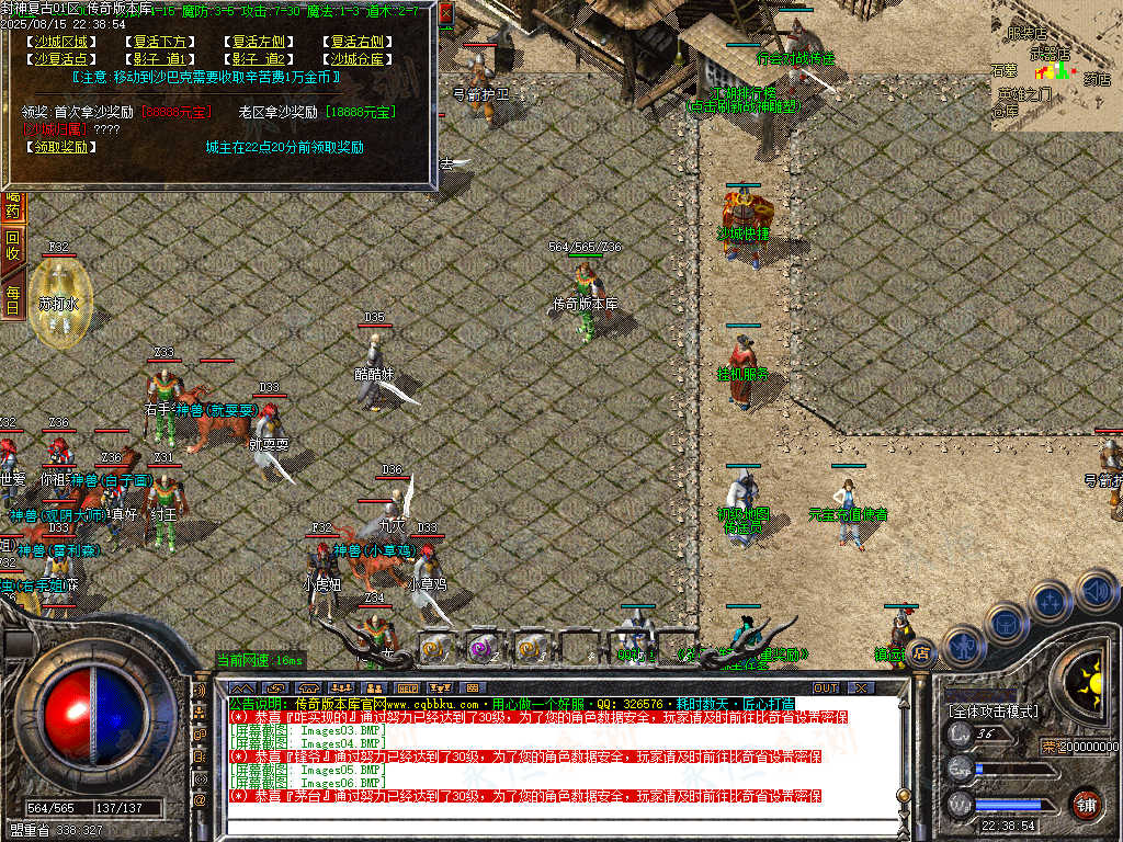 【攻城奖励】沙城捐献奖池,沙巴克攻城结束全成员可获奖