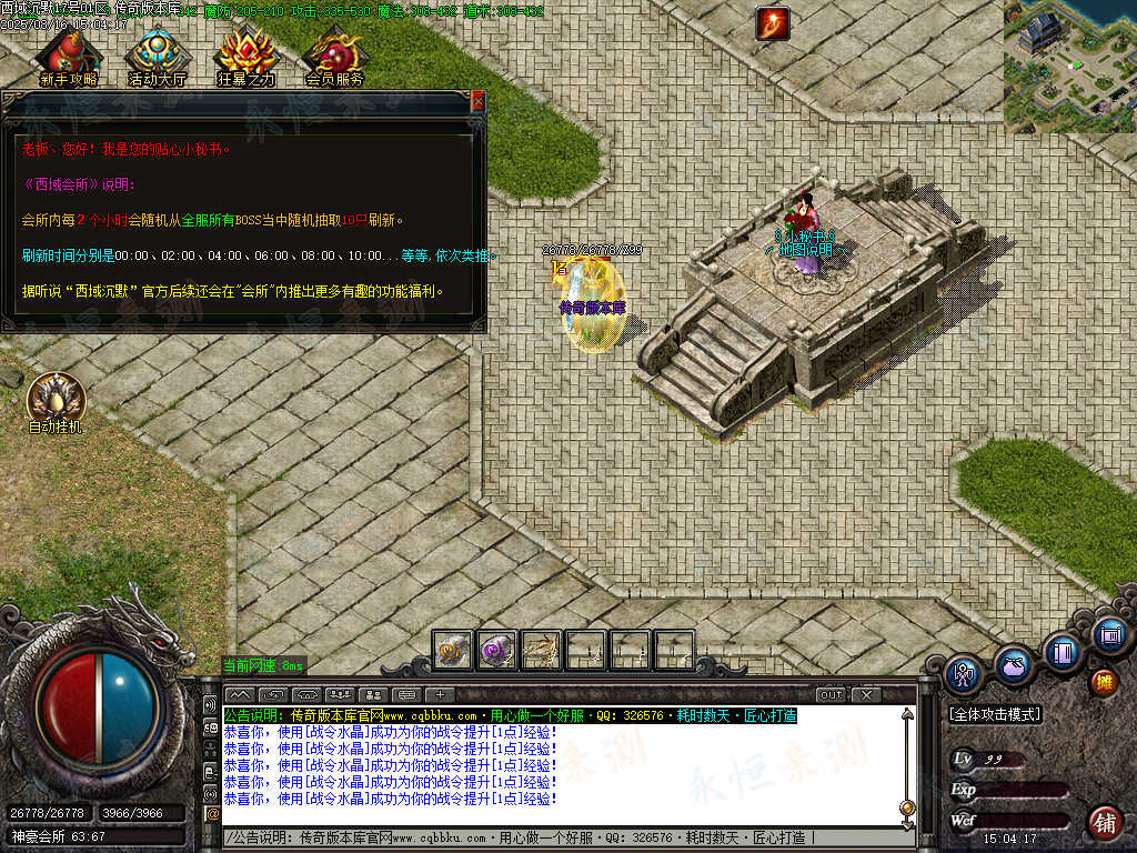 01-694独家西域沉默微变三职业传奇版本-带假人-ESP插件-自动回收-大背包