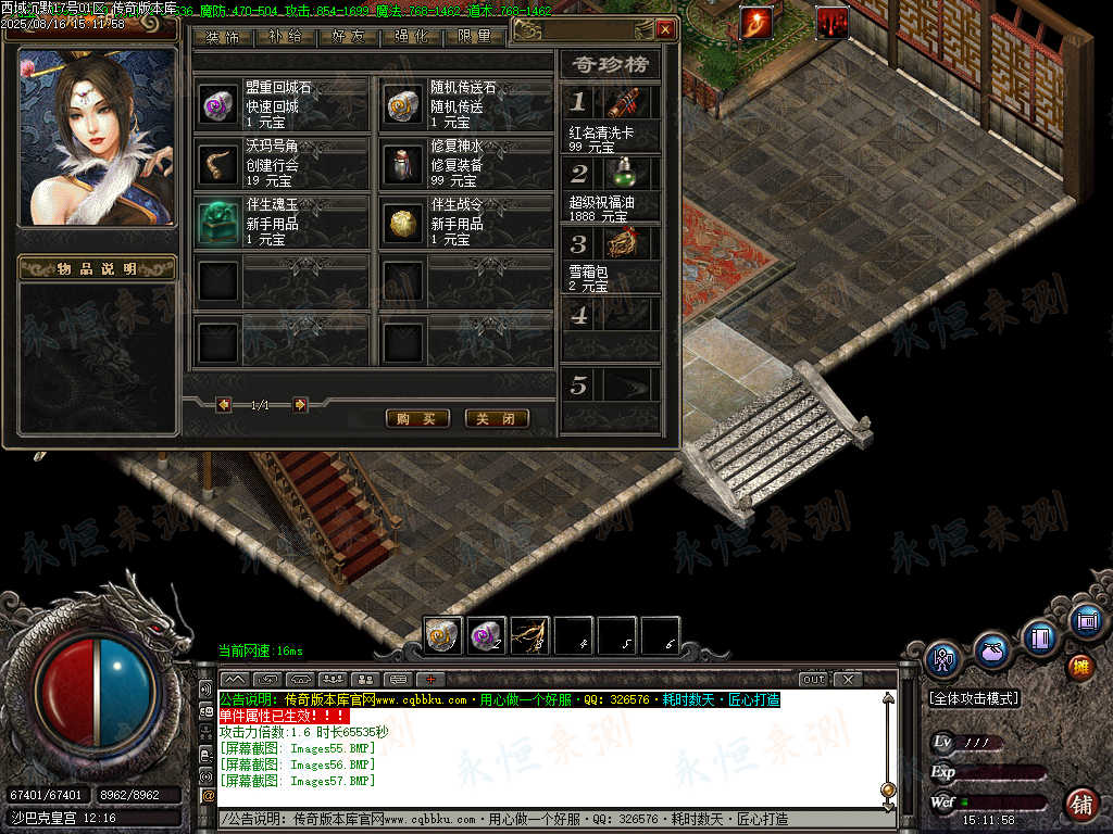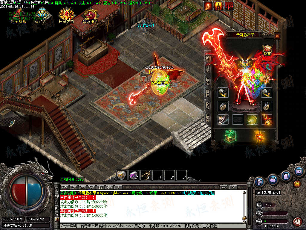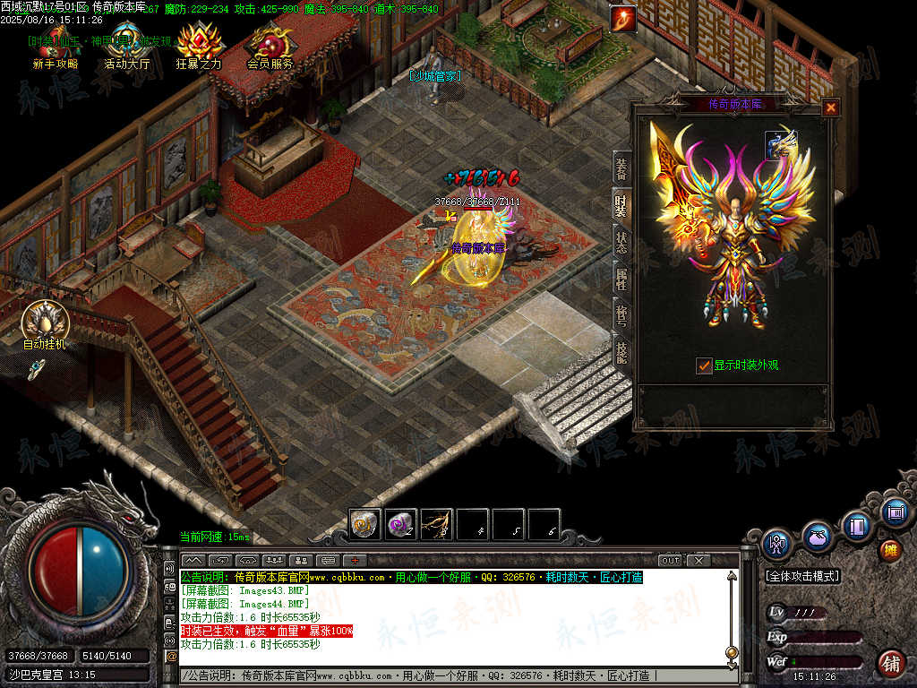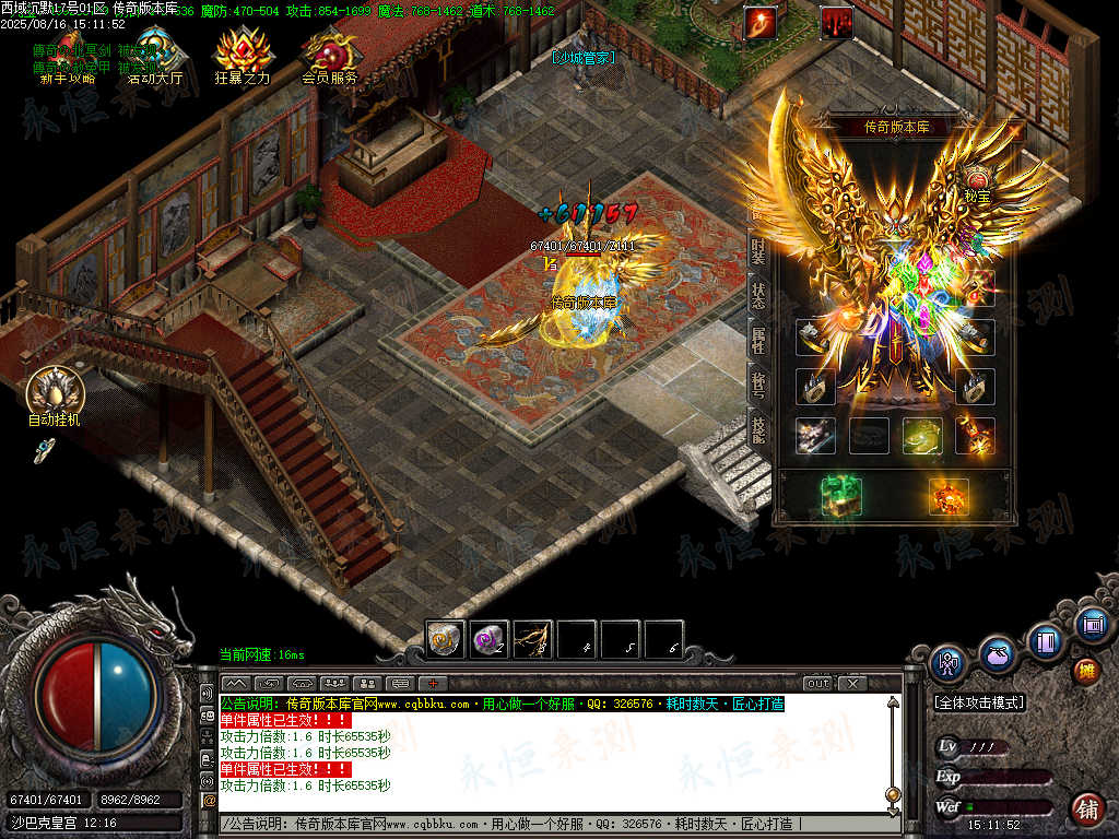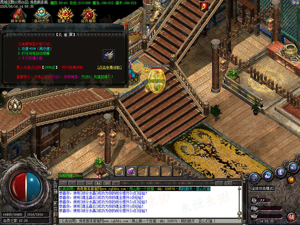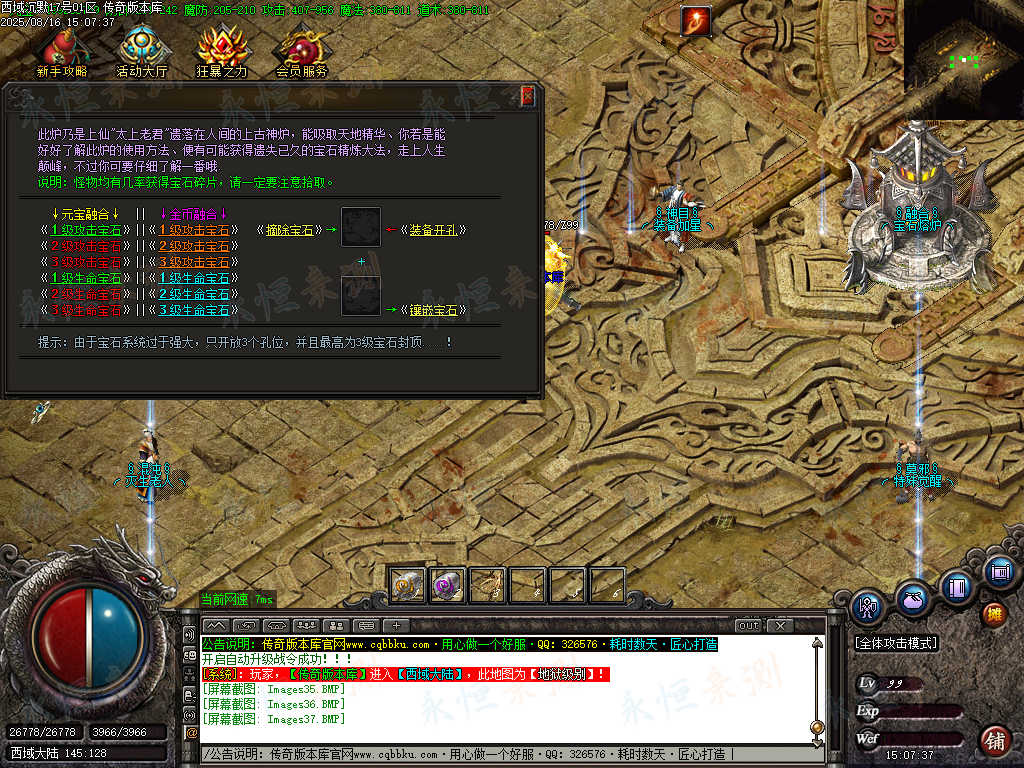 元宝充值:1=100+1充值点 (元宝、充值点可打,怪爆充值红包)
