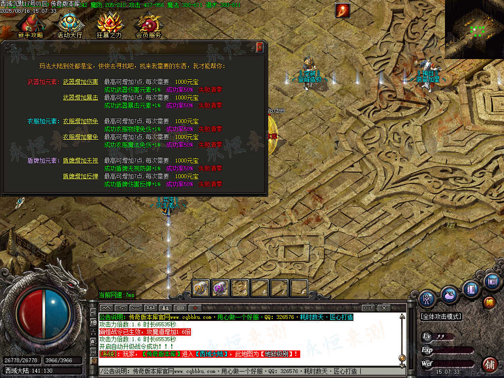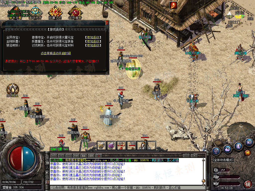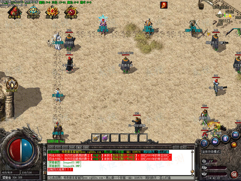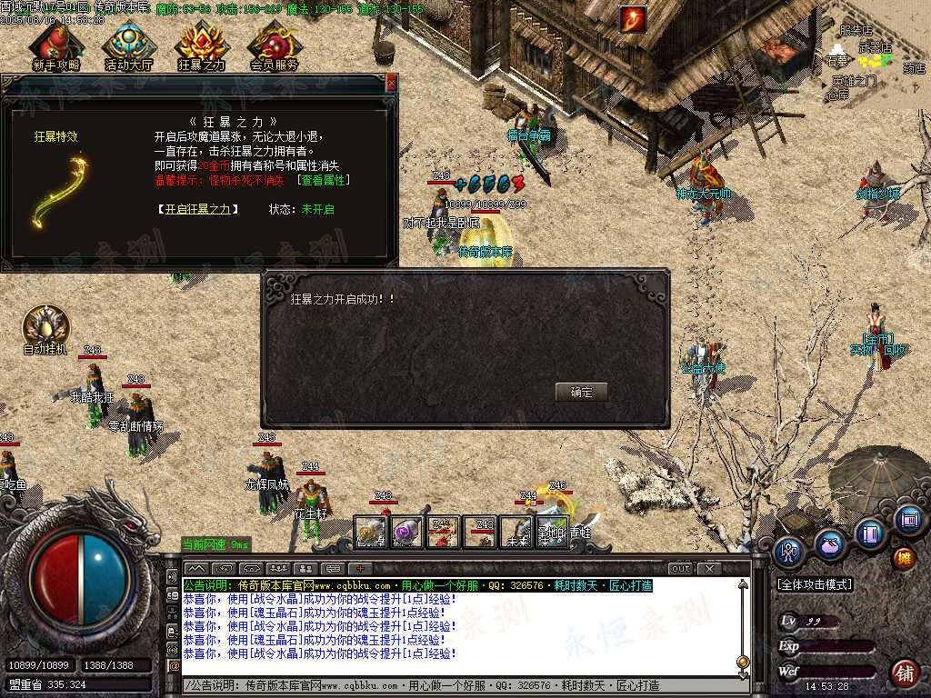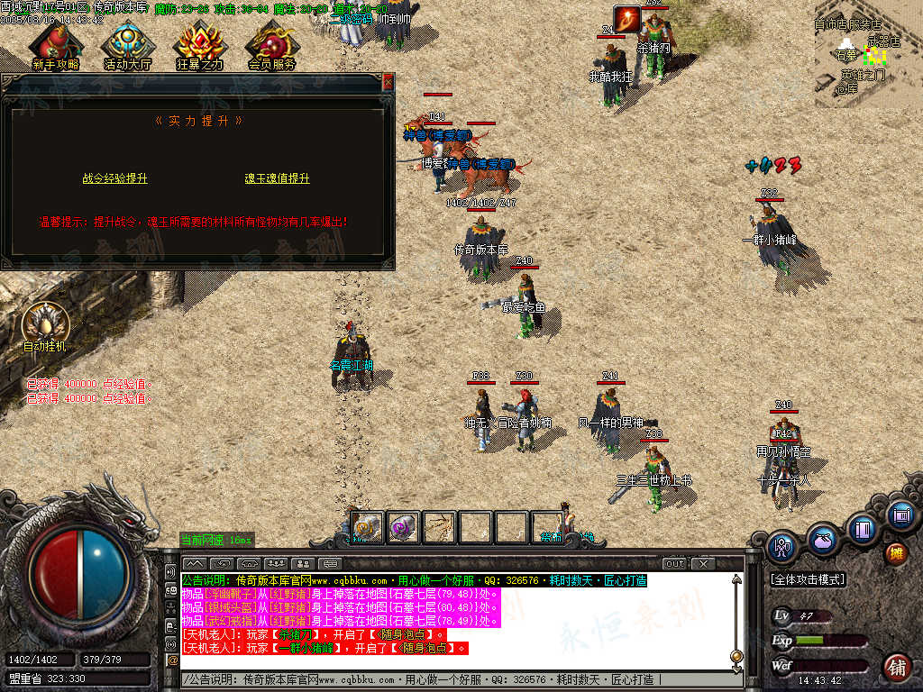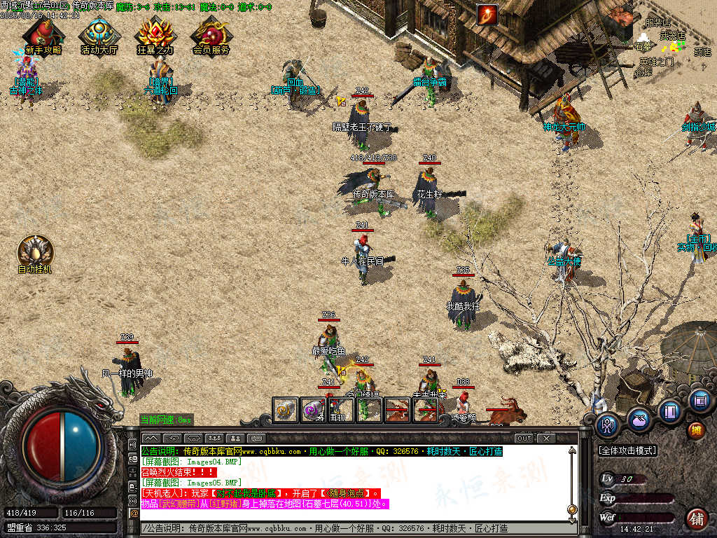 元宝充值:1=100+1充值点 (元宝、充值点可打,怪爆充值红包)