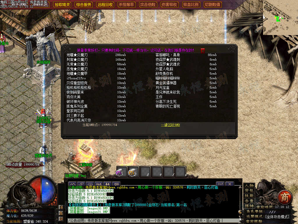 打死必爆boss必爆回收RMB点装备,全服所有地图都有新年福利BOSS,50%几率爆出1RMB点,