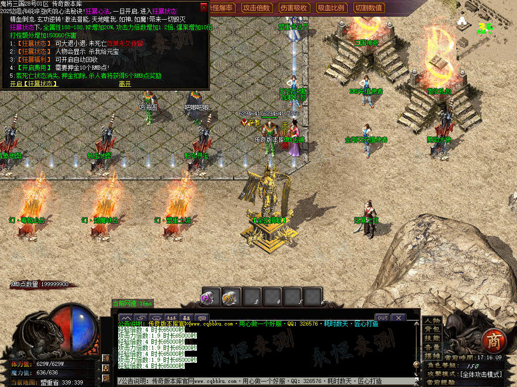土豪玩法:三国神豪300+沙捐30+士豪榜20+狂暴10=360,三国战神直150级,刀刀冰冻