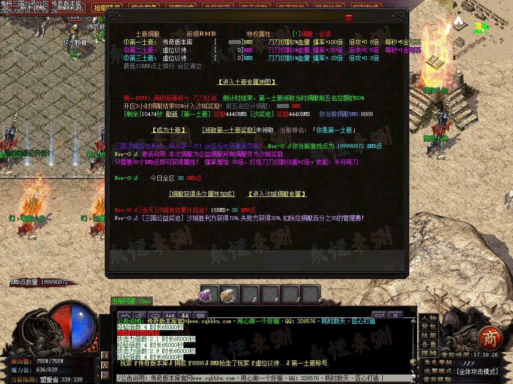 全服无任何暗坑以及隐藏消费,所有捐献全部拿来用于攻沙奖励回馈各位玩家