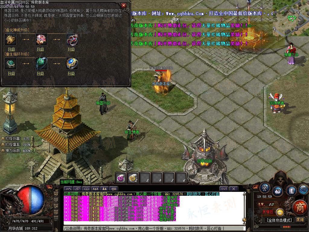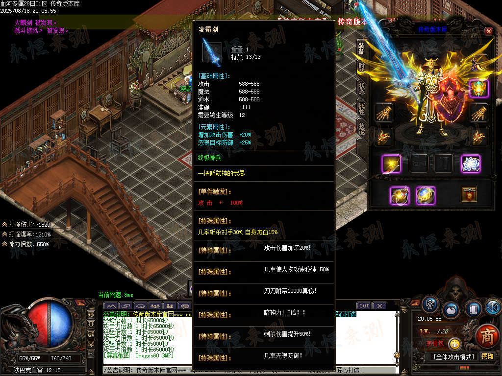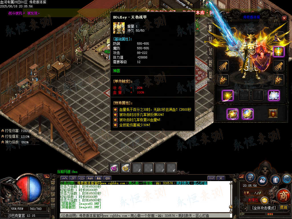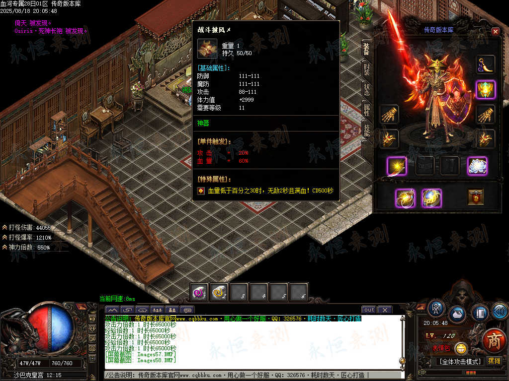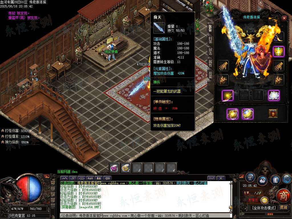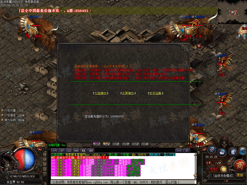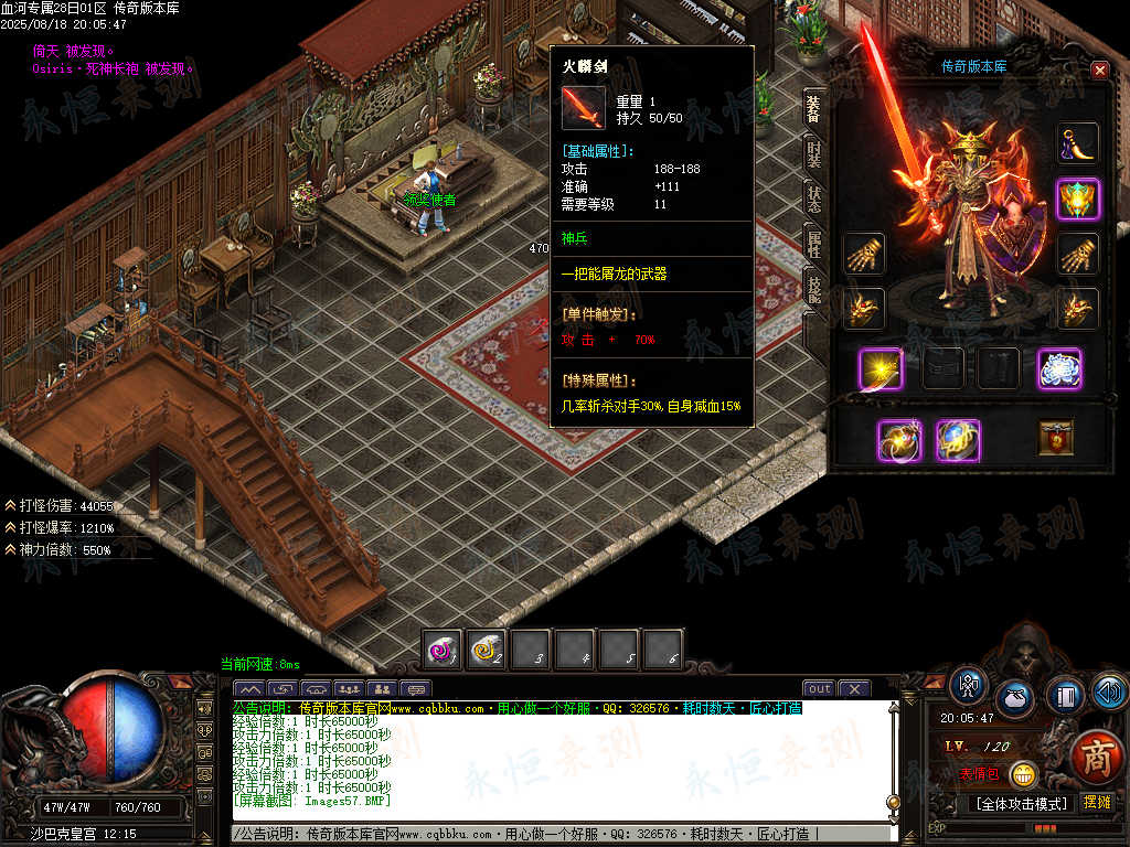 传奇版本库中,血河专属神器单职业版本热血登场。带假人陪战不孤寂,ESP插件助你洞察战局,自动回收便捷处理物资。专属神器暗藏强大战力,单职业成长路径清晰,在血河战场中激战,感受纯粹的传奇热血与畅爽体验。