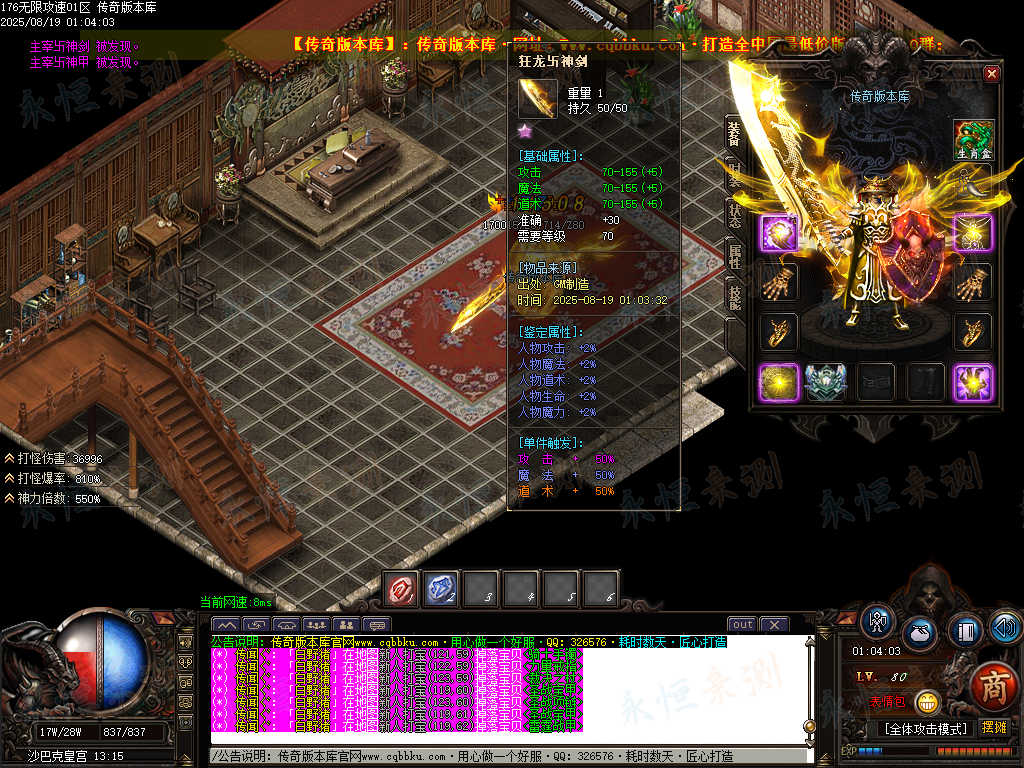 01-699独家1.76无限攻速超级小极品单职业传奇服务端-ESP版插件-带假人光柱-大背包