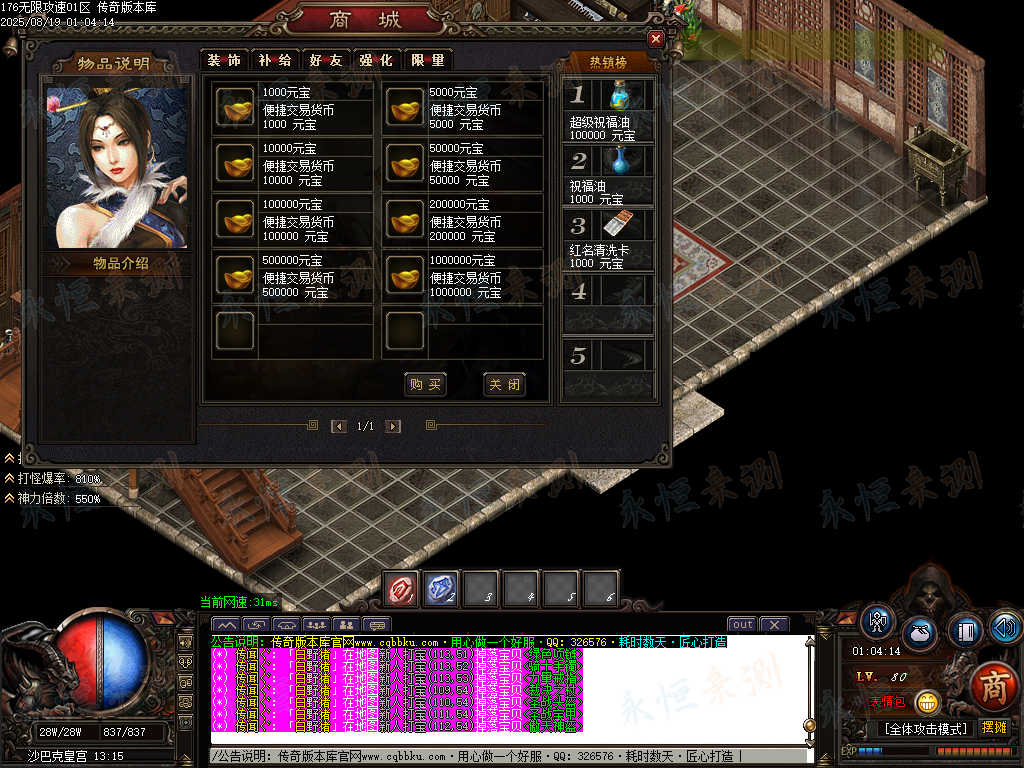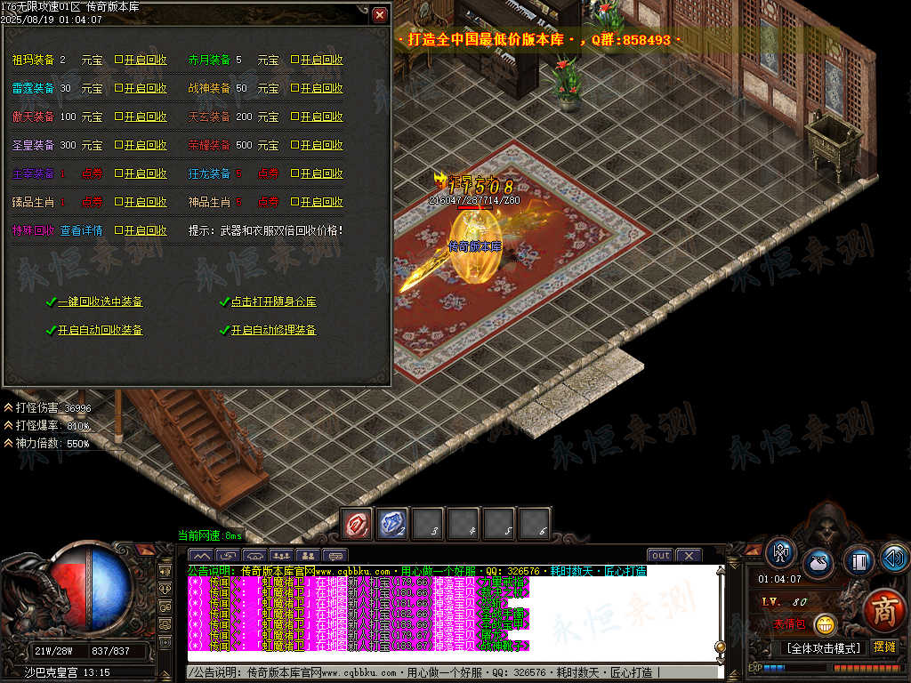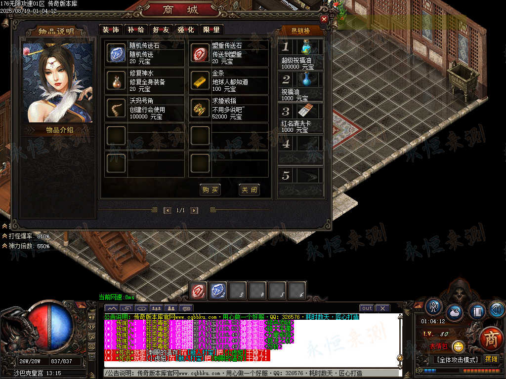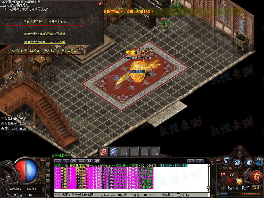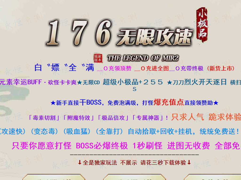 01-699独家1.76无限攻速超级小极品单职业传奇服务端-ESP版插件-带假人光柱-大背包 | ||