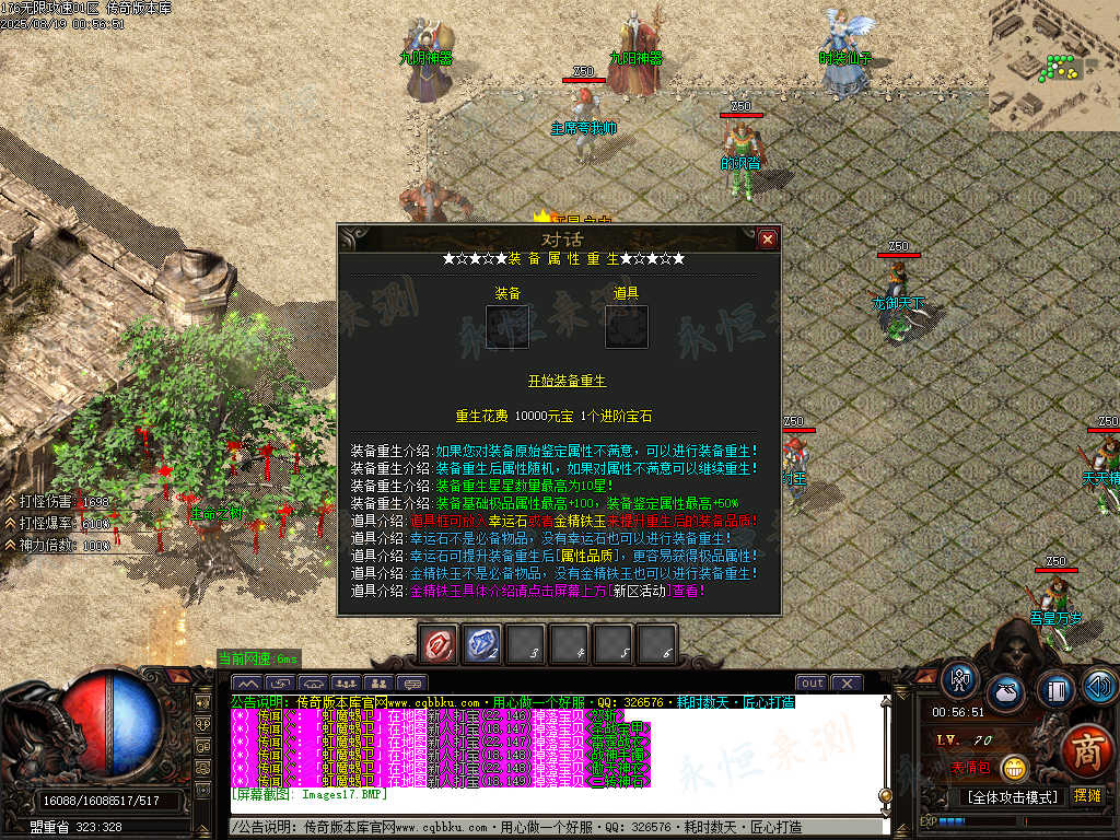 装备重生介绍:如果您对装备原始鉴定属性不满意,可以进行装备重生!
