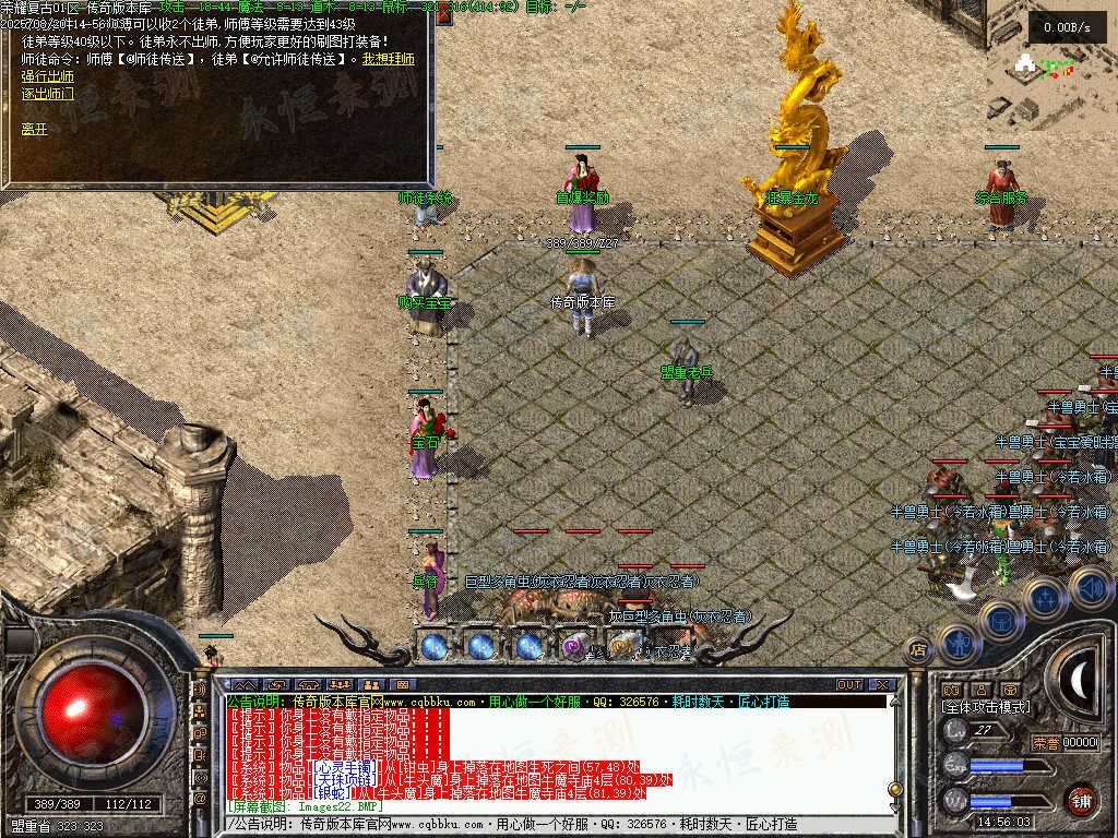 重点来了,土城安全区左侧“拜师系统”,普通玩家建议进服三个号,利用师徒传送打装备,师徒号职业搭配看自己。