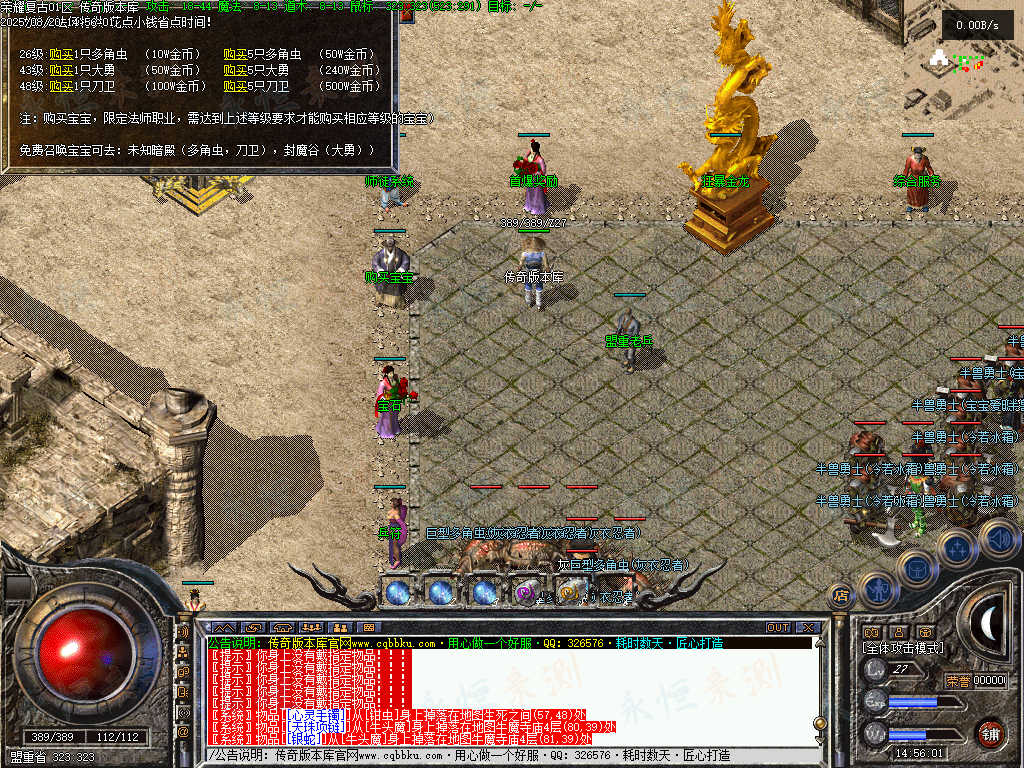 3、法师宝宝:26级未知暗殿招多多,43级封魔谷招大勇,48级未知暗殿招刀卫。