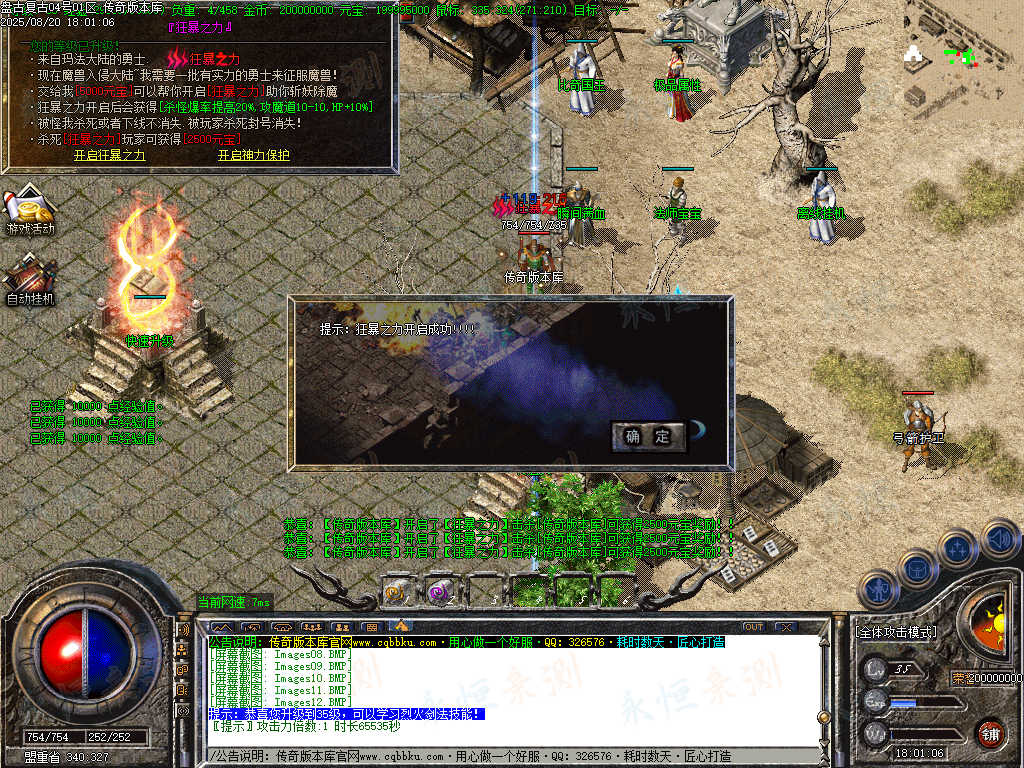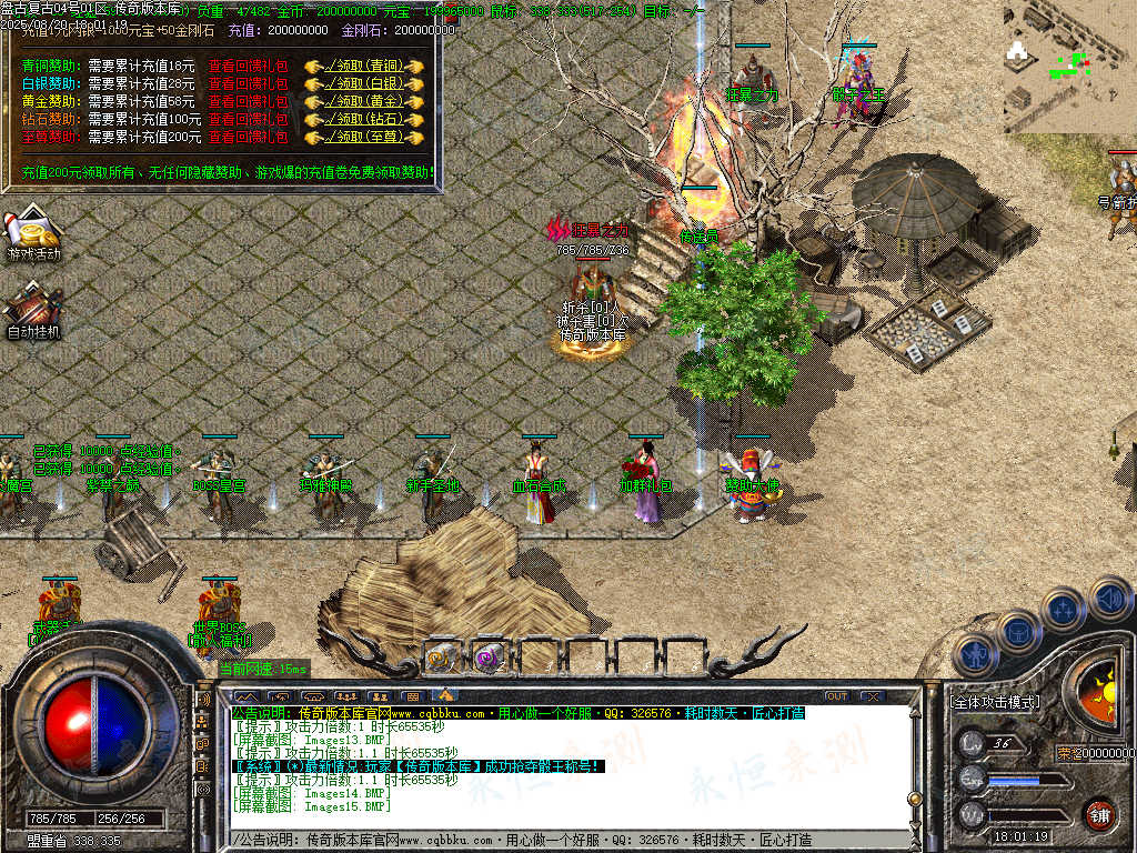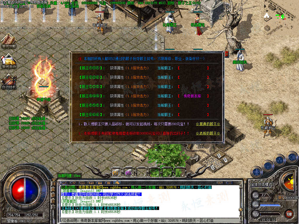 前期随便打点元宝开启称号狂暴之力增加爆率,开启赞助200顶赞 带切割带绿毒