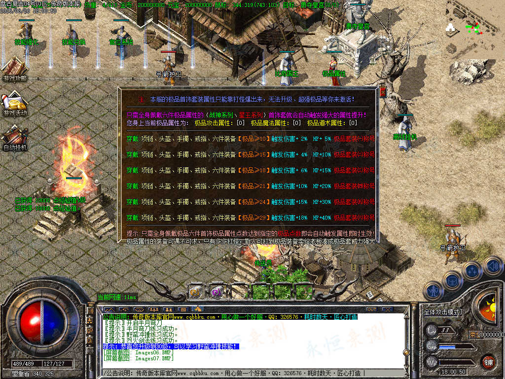 前期打怪更加效率 打出来的装备可以卖给老板。一定要看极品 本服极品全靠打!极品可以回充值
