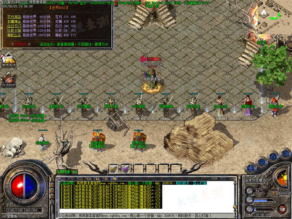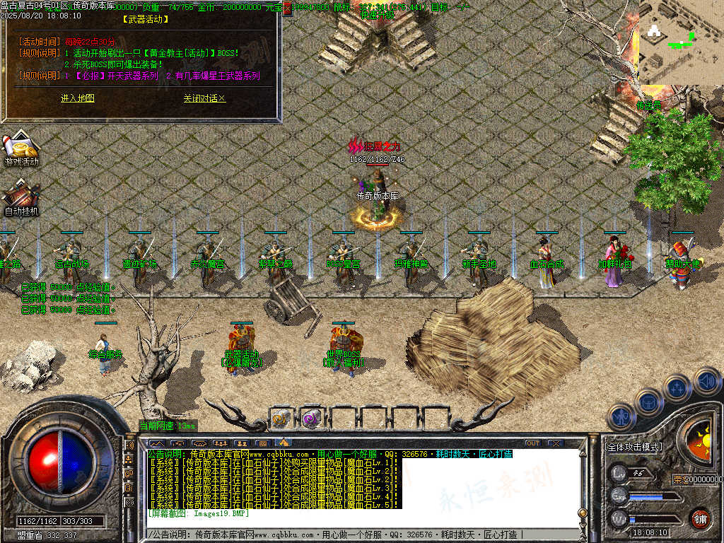 六大神兵:本服所有18000血以上BOSS都会爆出黄金系列,开天系列武器,可回收!