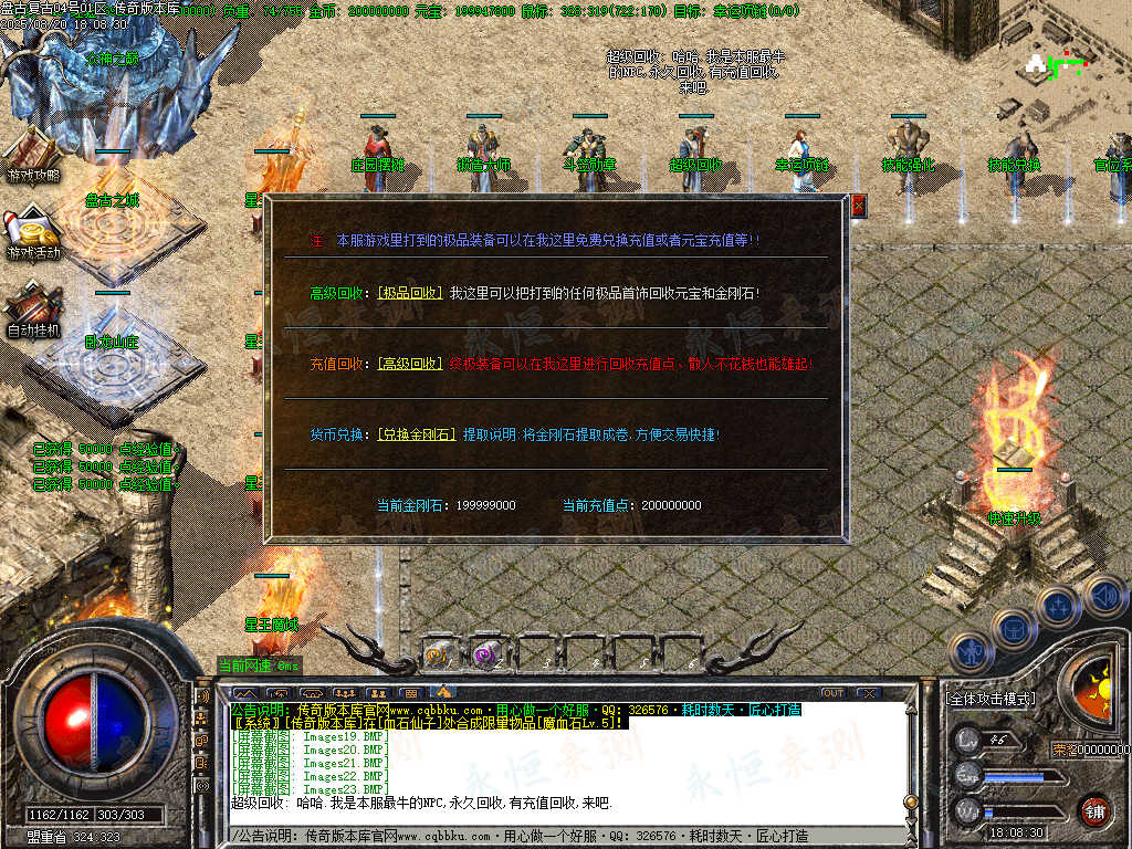 运9套最大攻击后期元宝,金刚石很好打,高级BOSS爆率超多,请进游戏自行体验