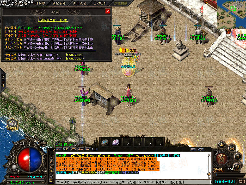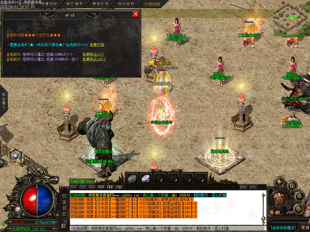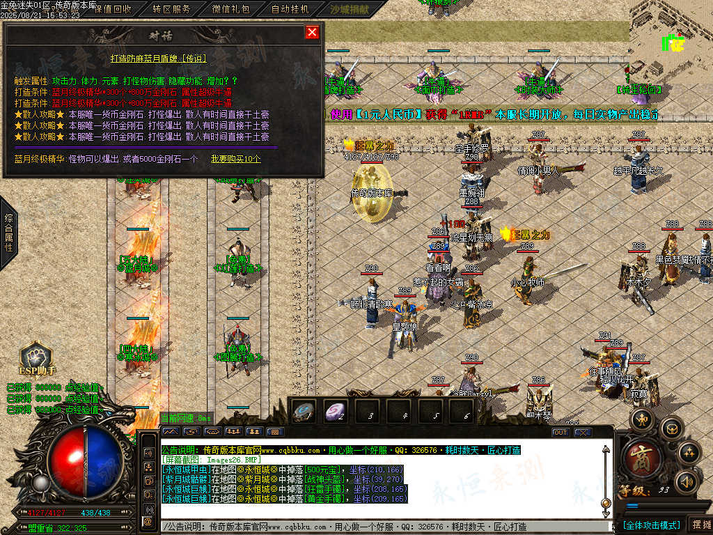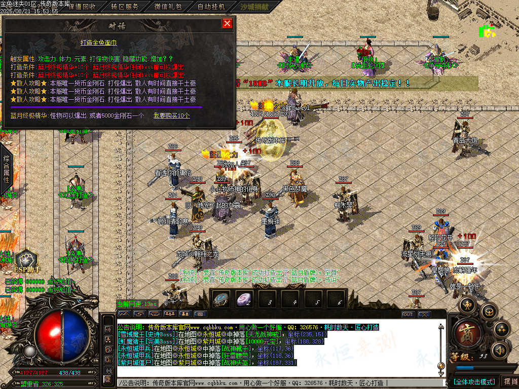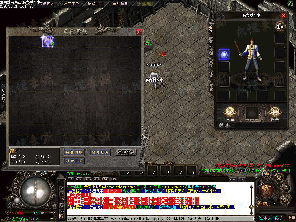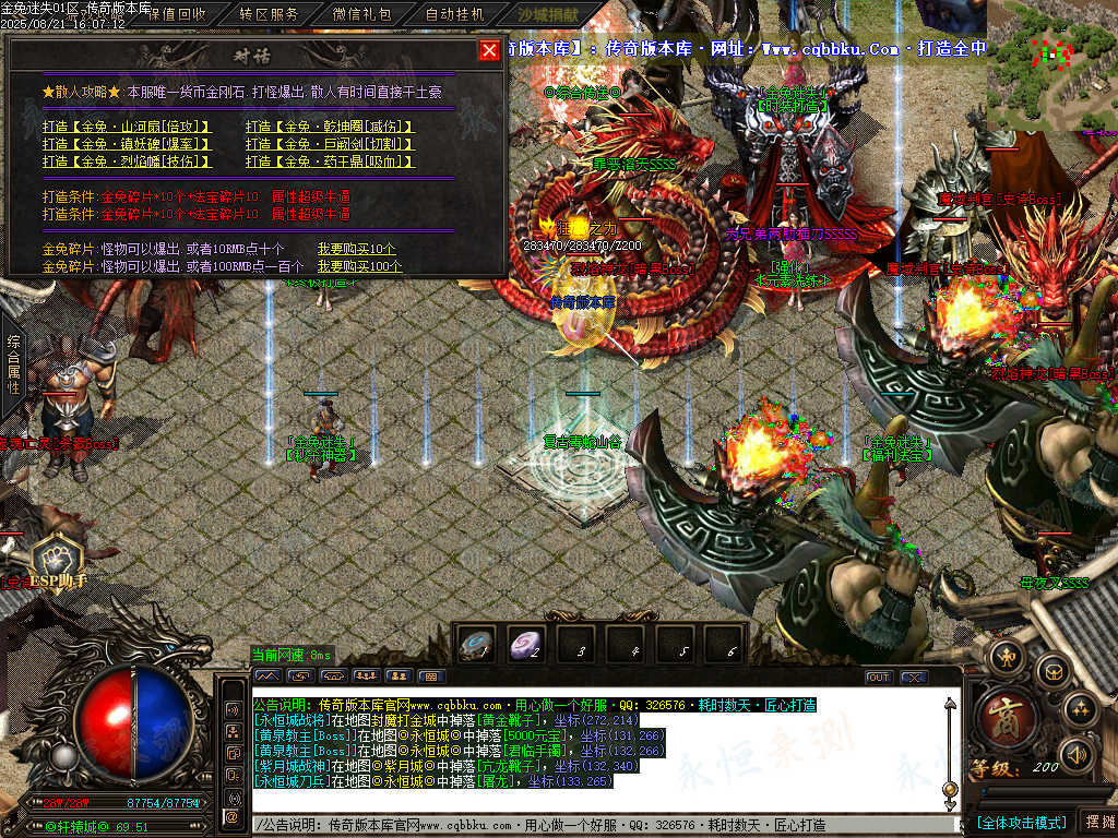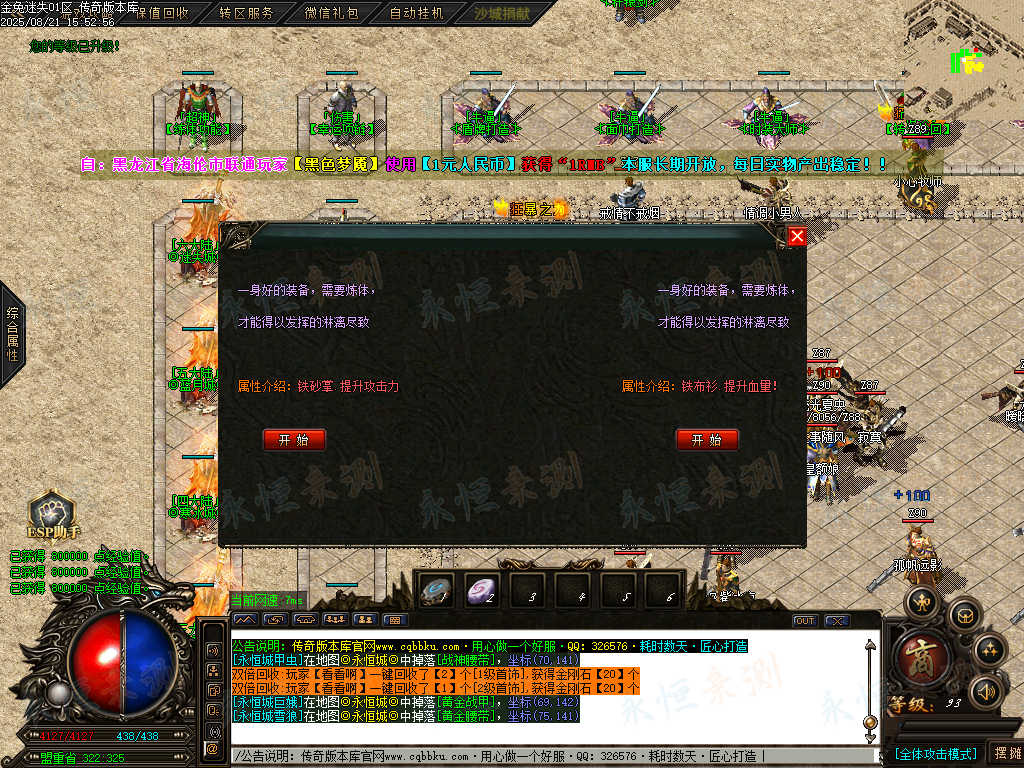2、本服特殊装备靠材料元宝合成,材料和元宝只爆不卖,全部靠打。。。