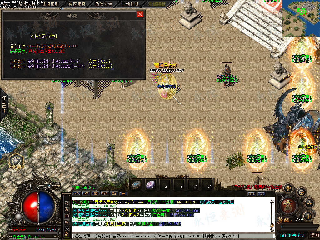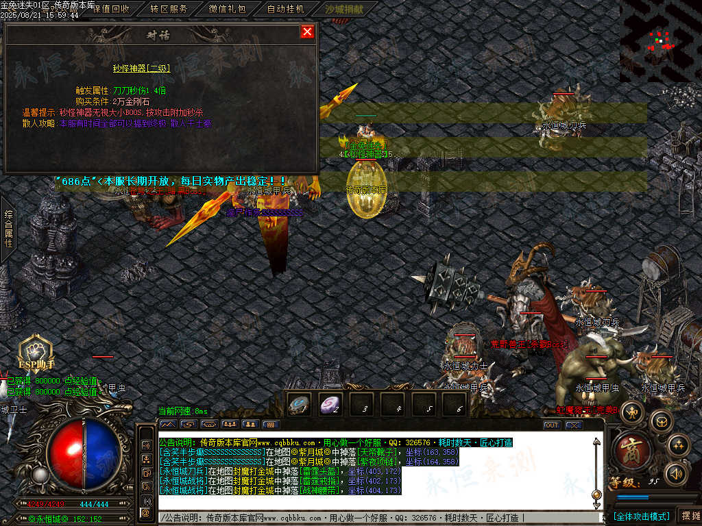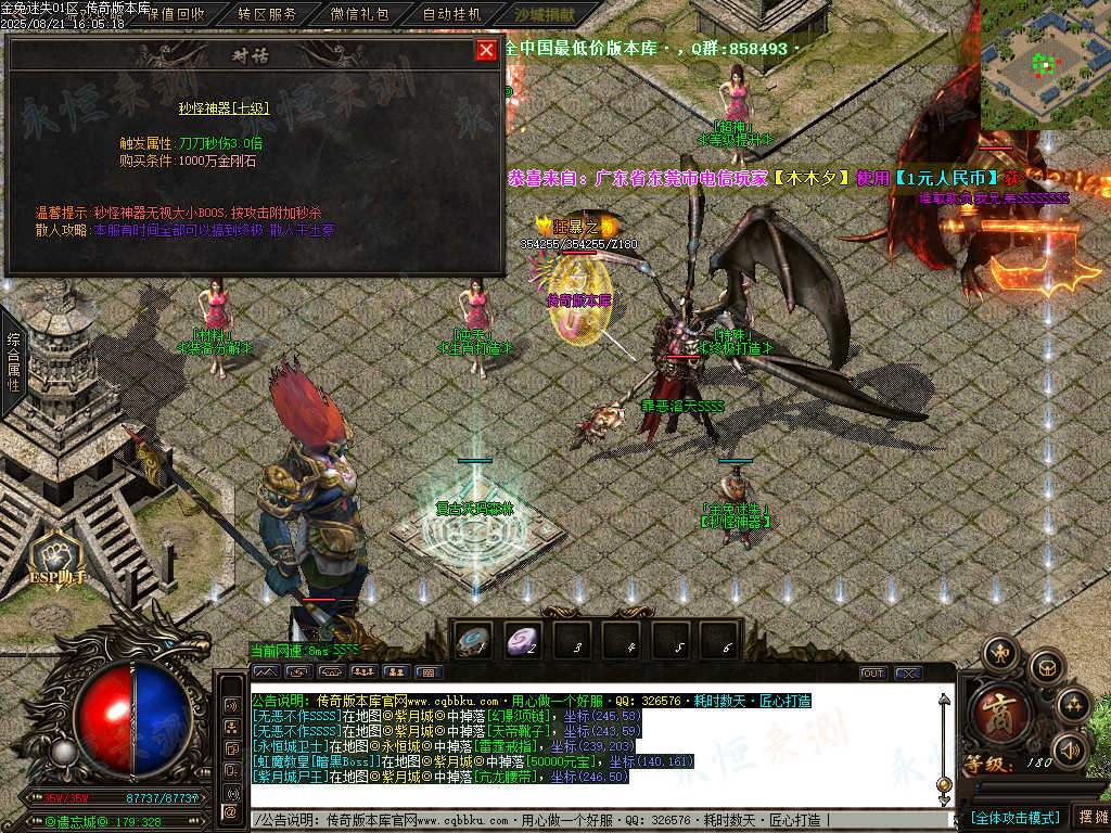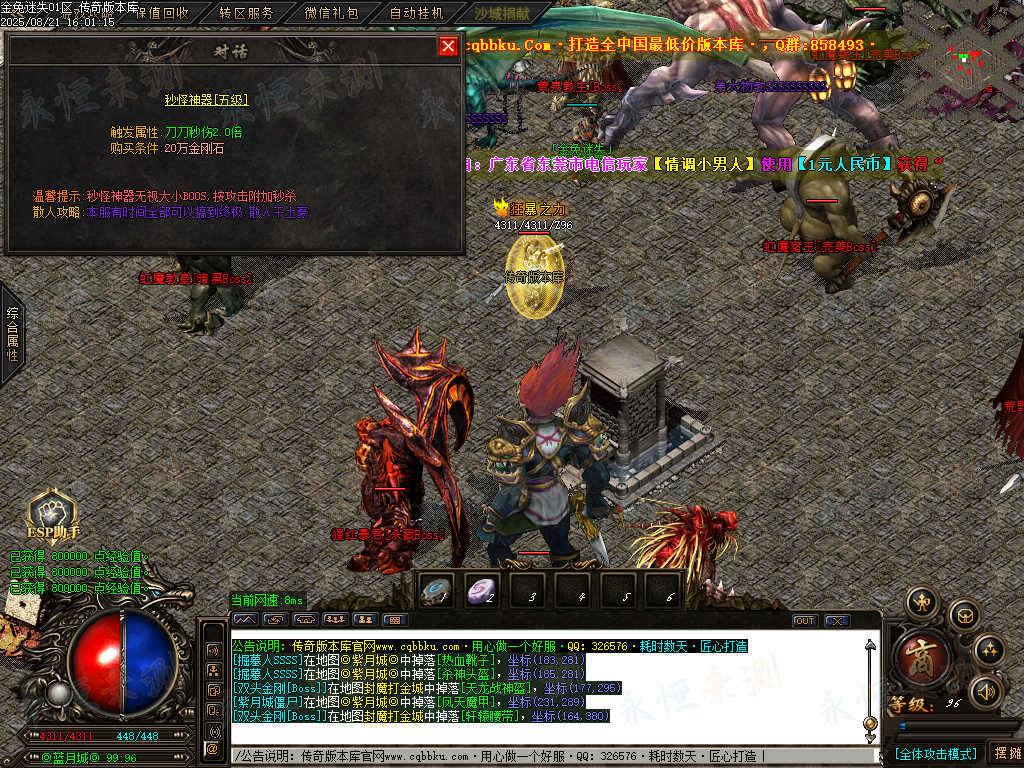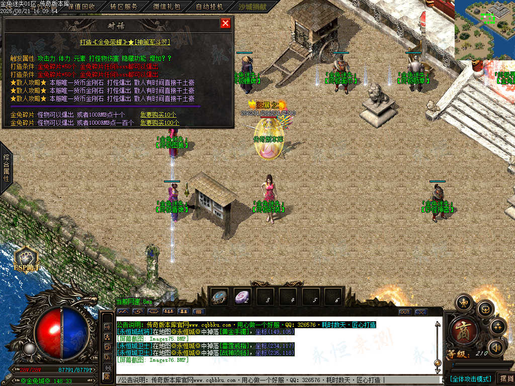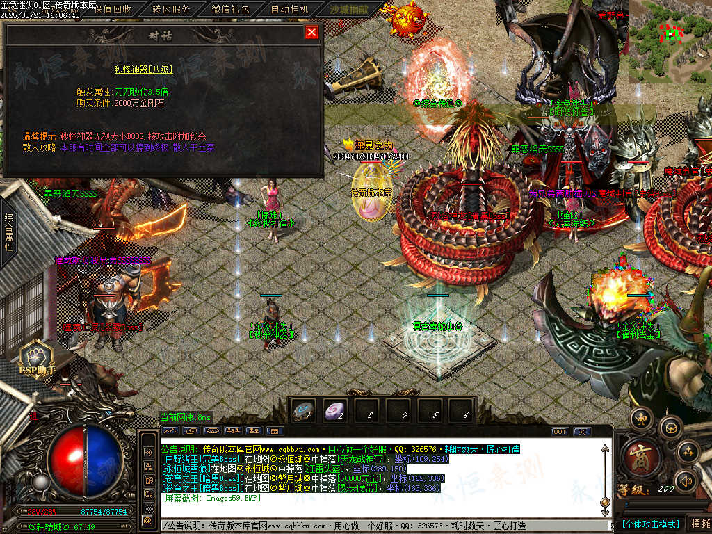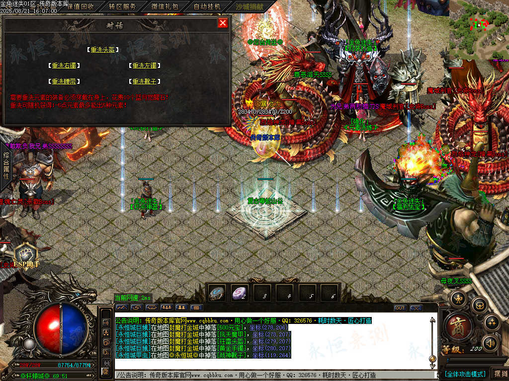 2、本服特殊装备靠材料元宝合成,材料和元宝只爆不卖,全部靠打。。。