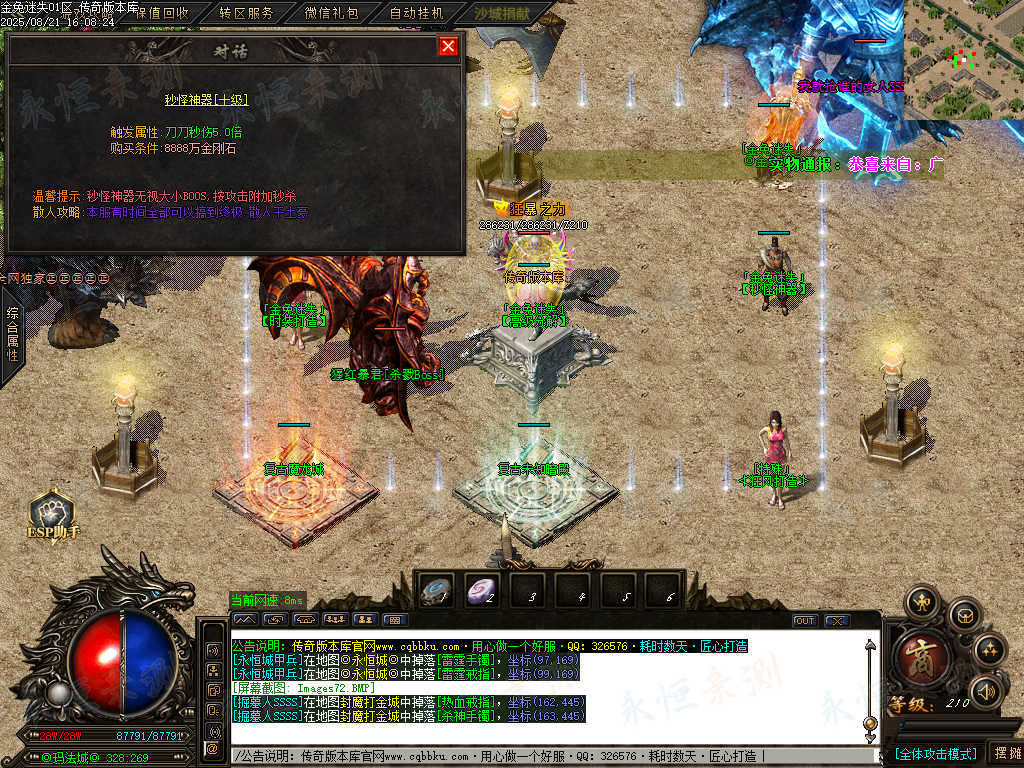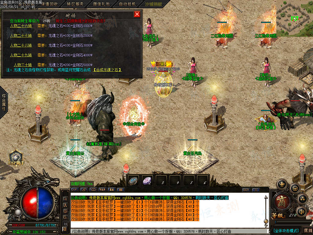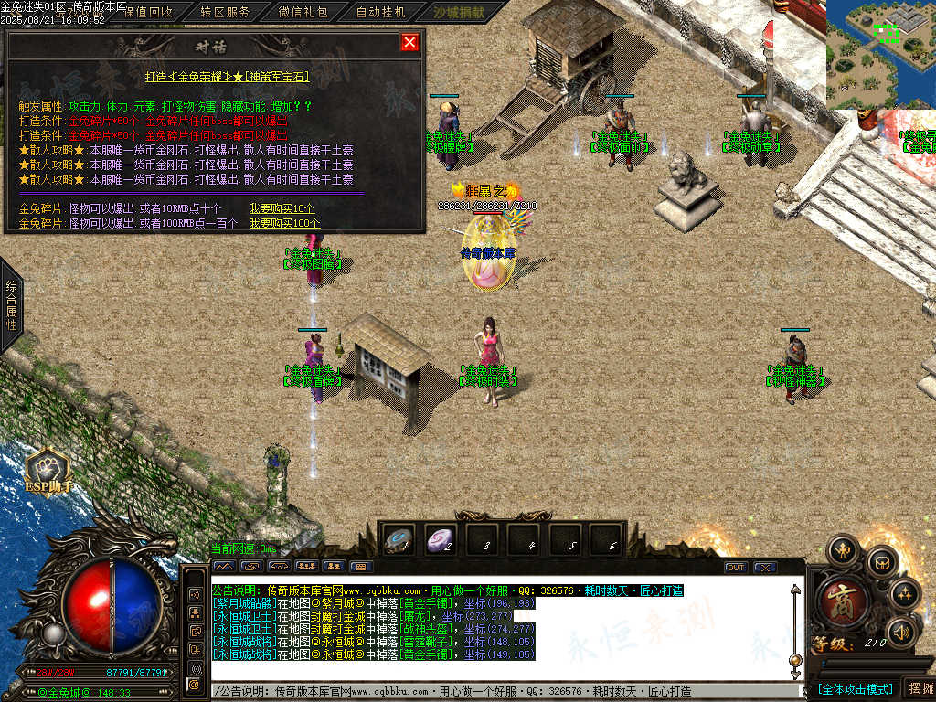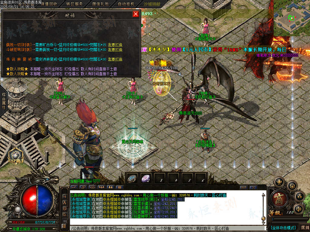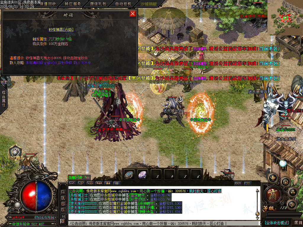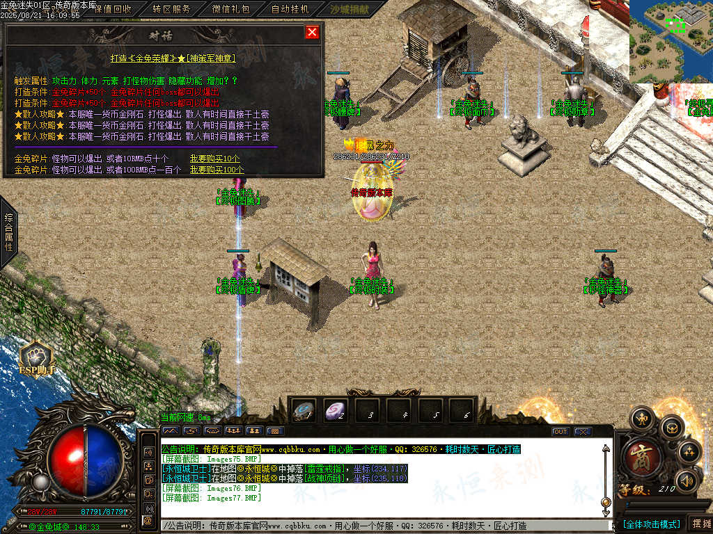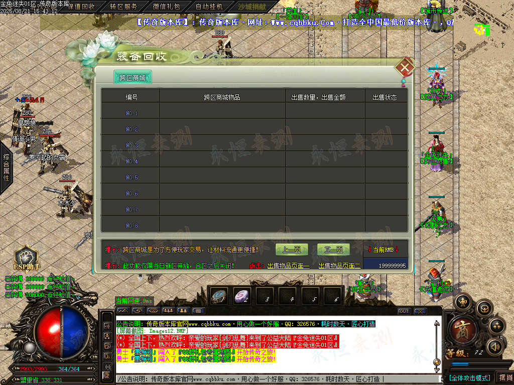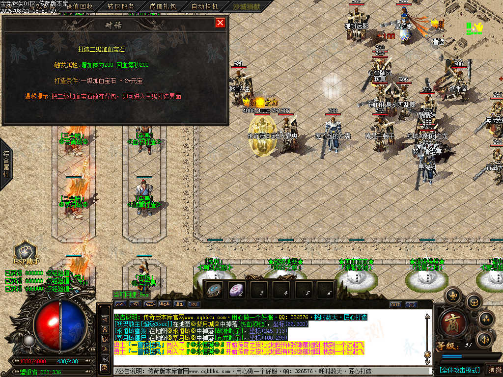 2、本服特殊装备靠材料元宝合成,材料和元宝只爆不卖,全部靠打。。。