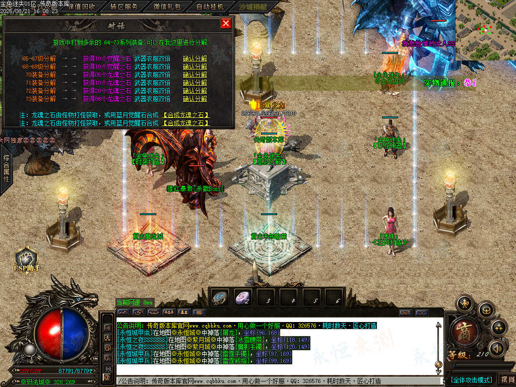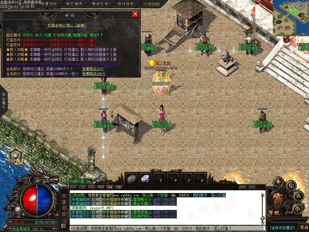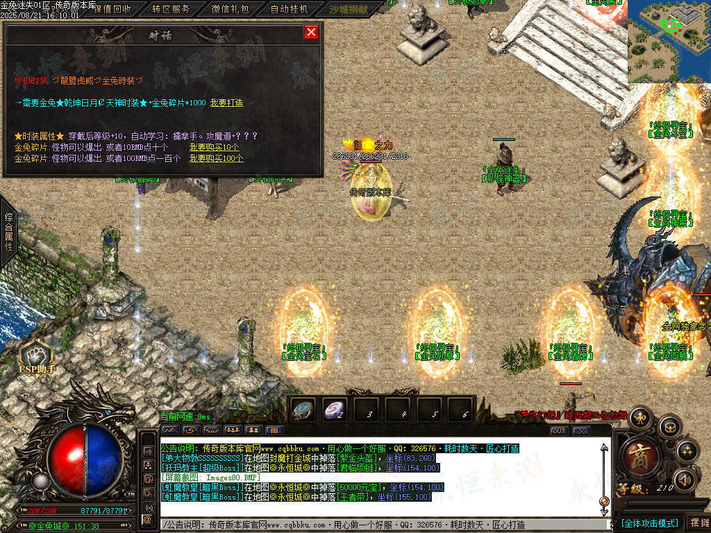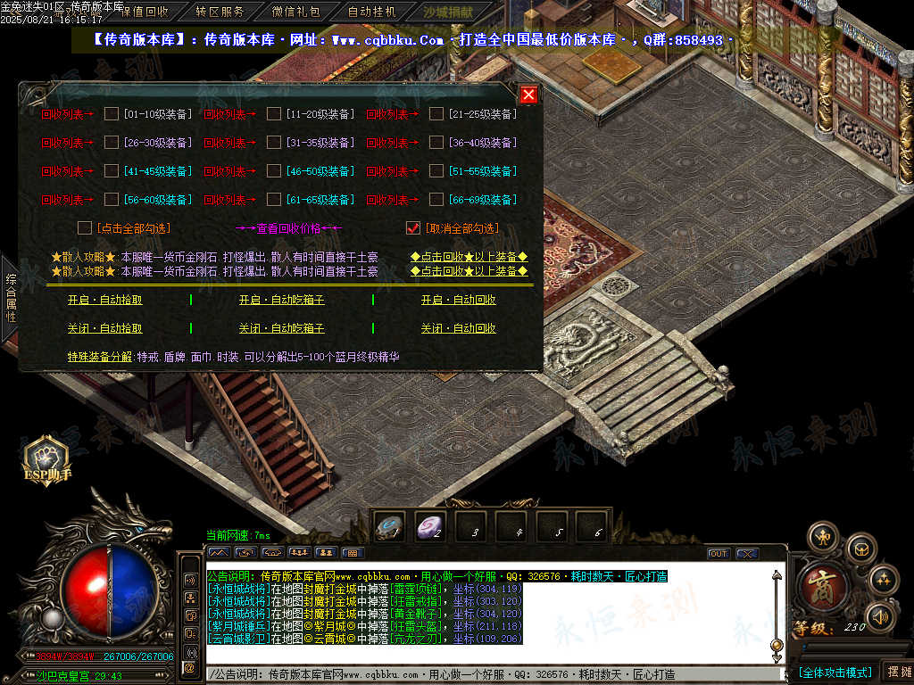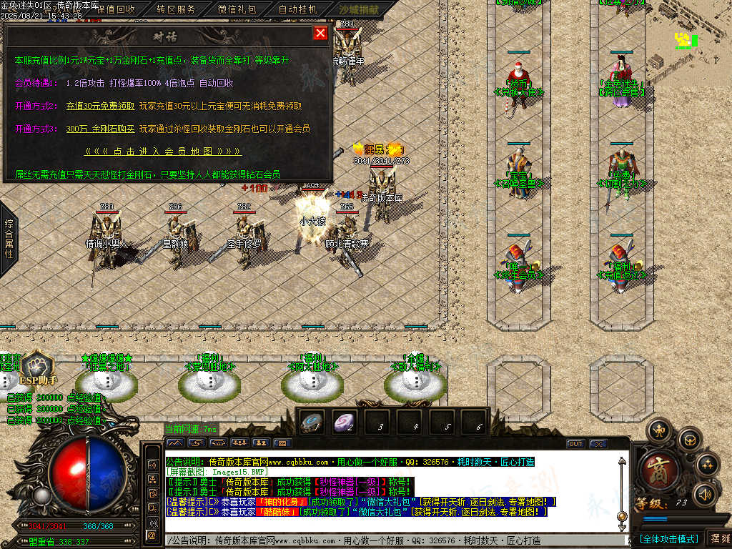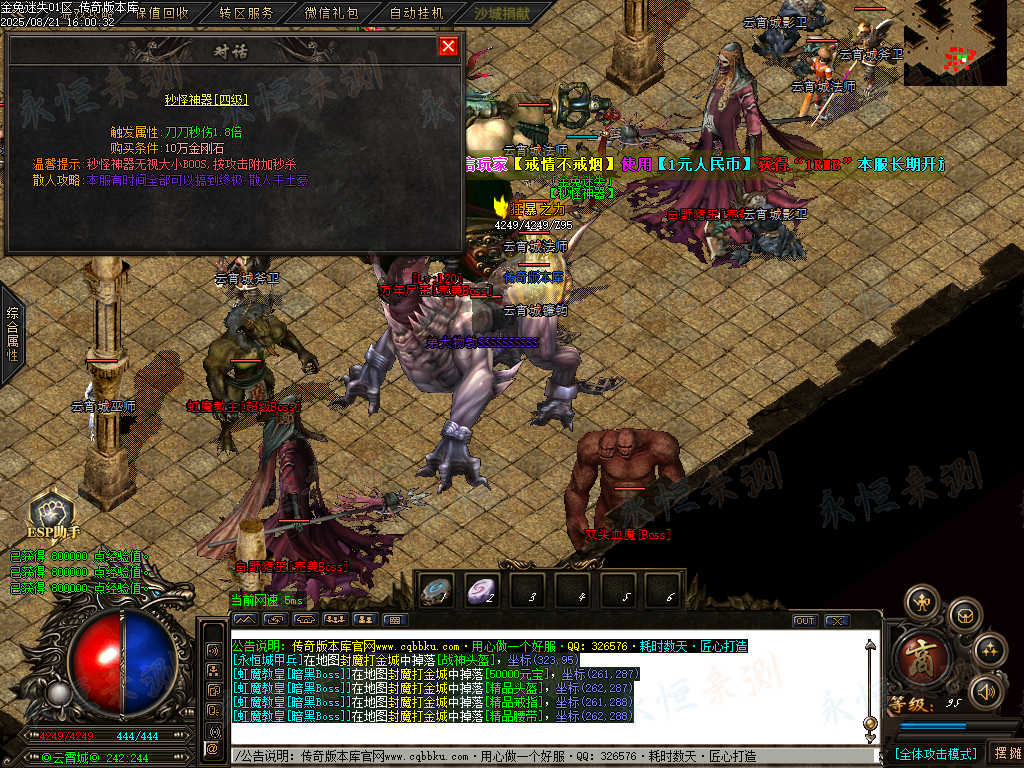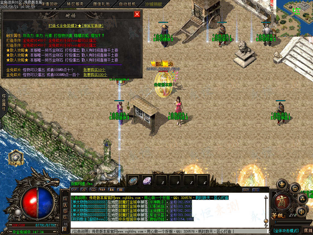 2、本服特殊装备靠材料元宝合成,材料和元宝只爆不卖,全部靠打。。。