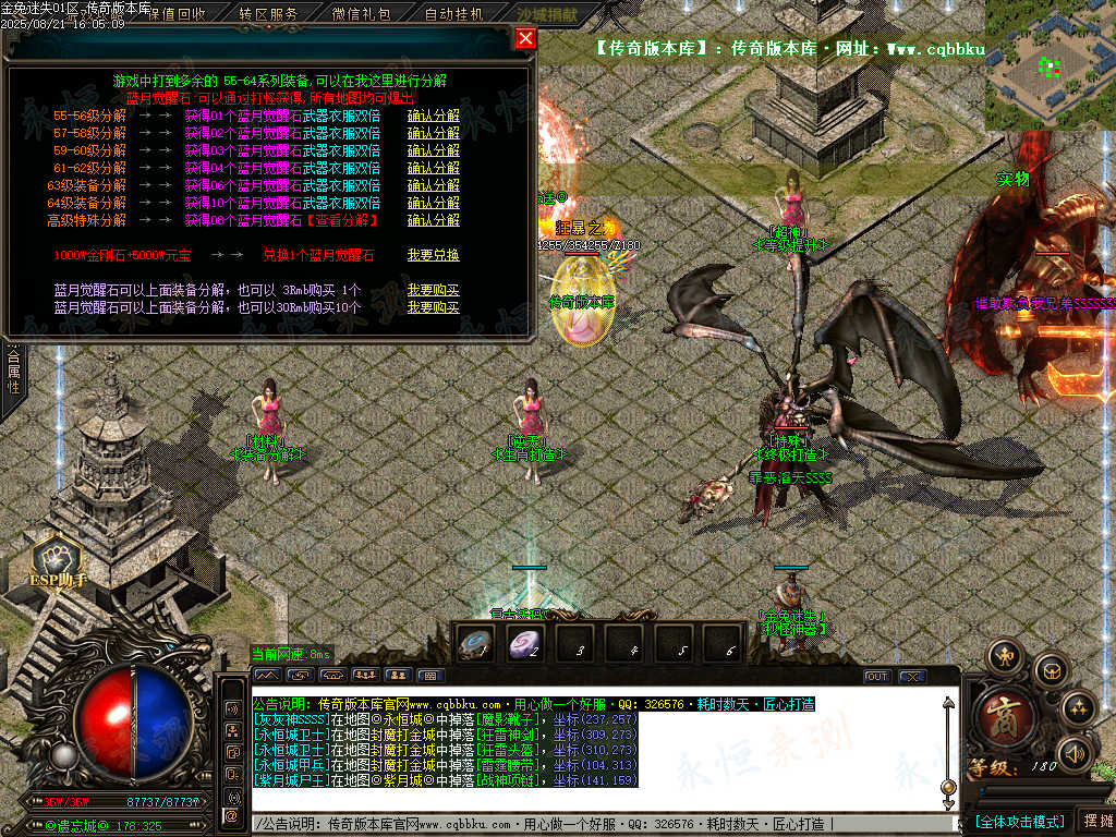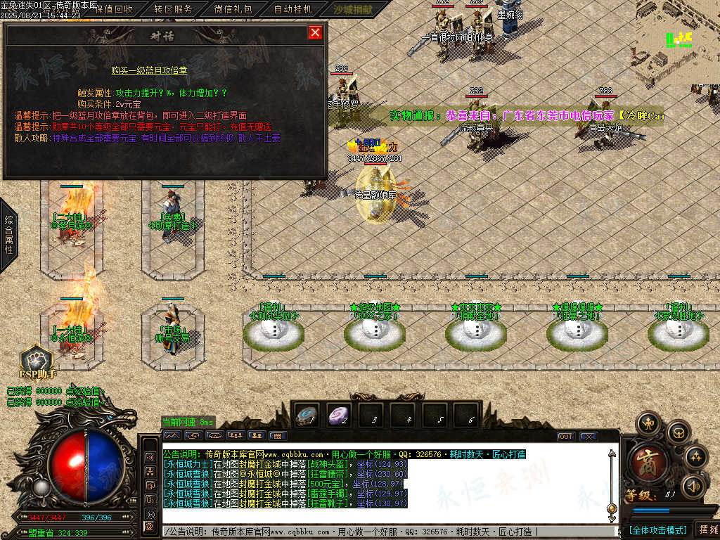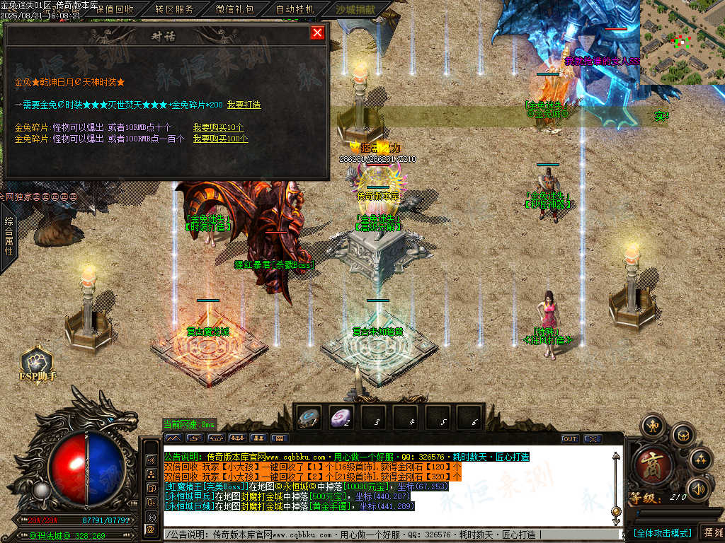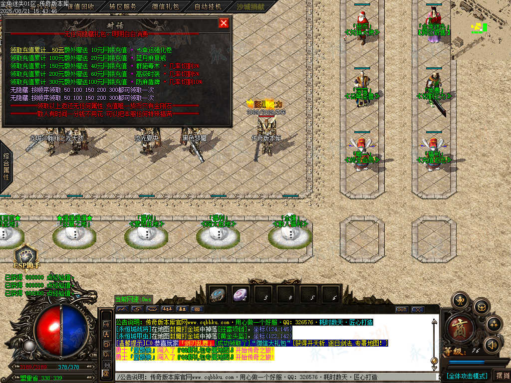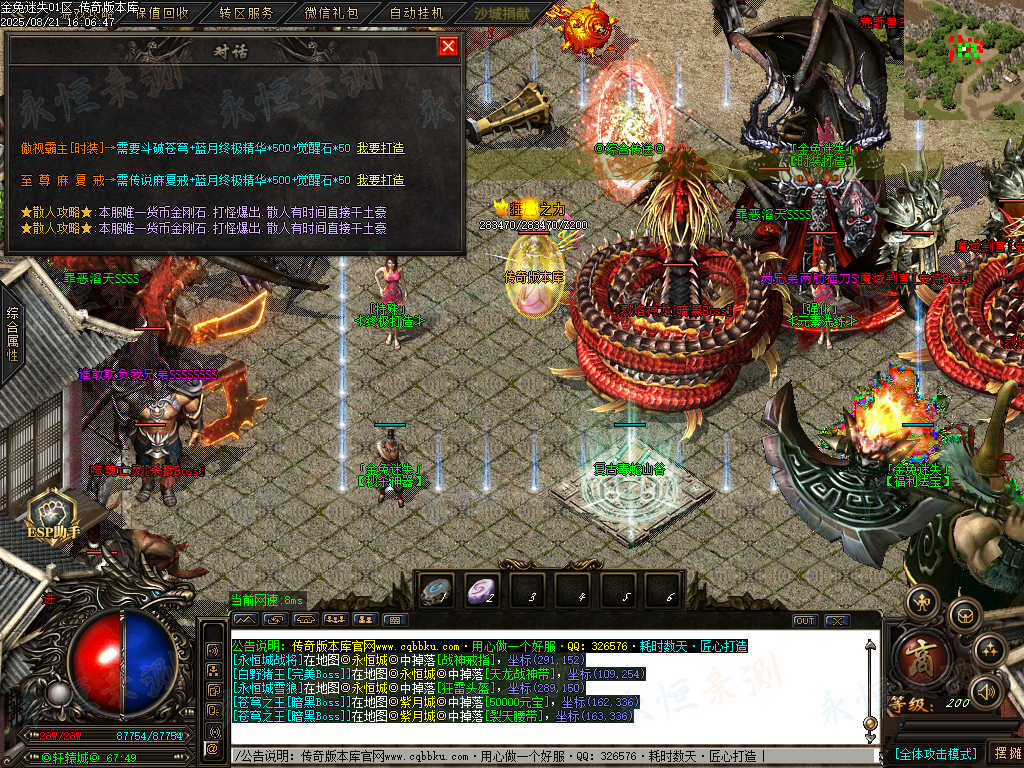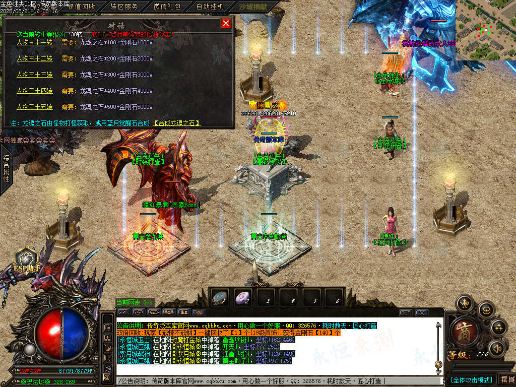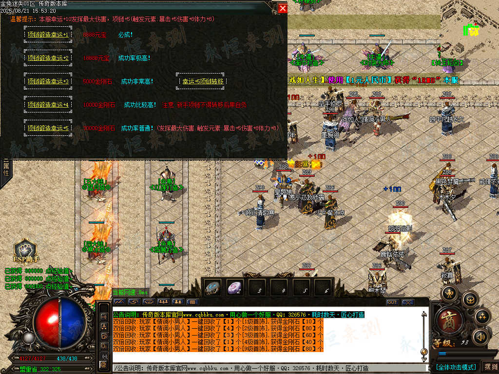 2、本服特殊装备靠材料元宝合成,材料和元宝只爆不卖,全部靠打。。。