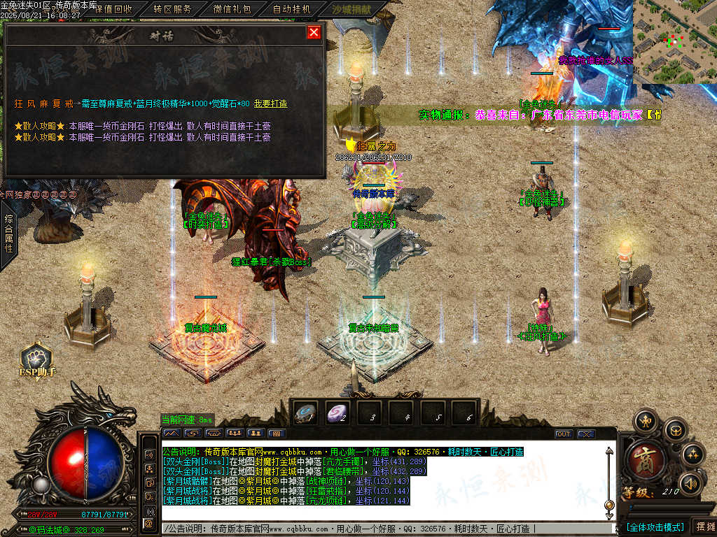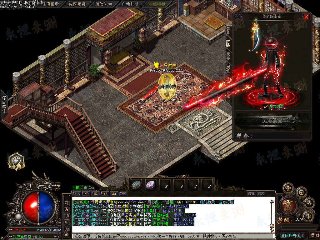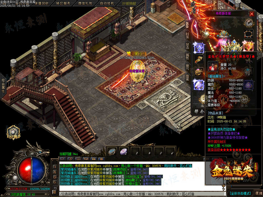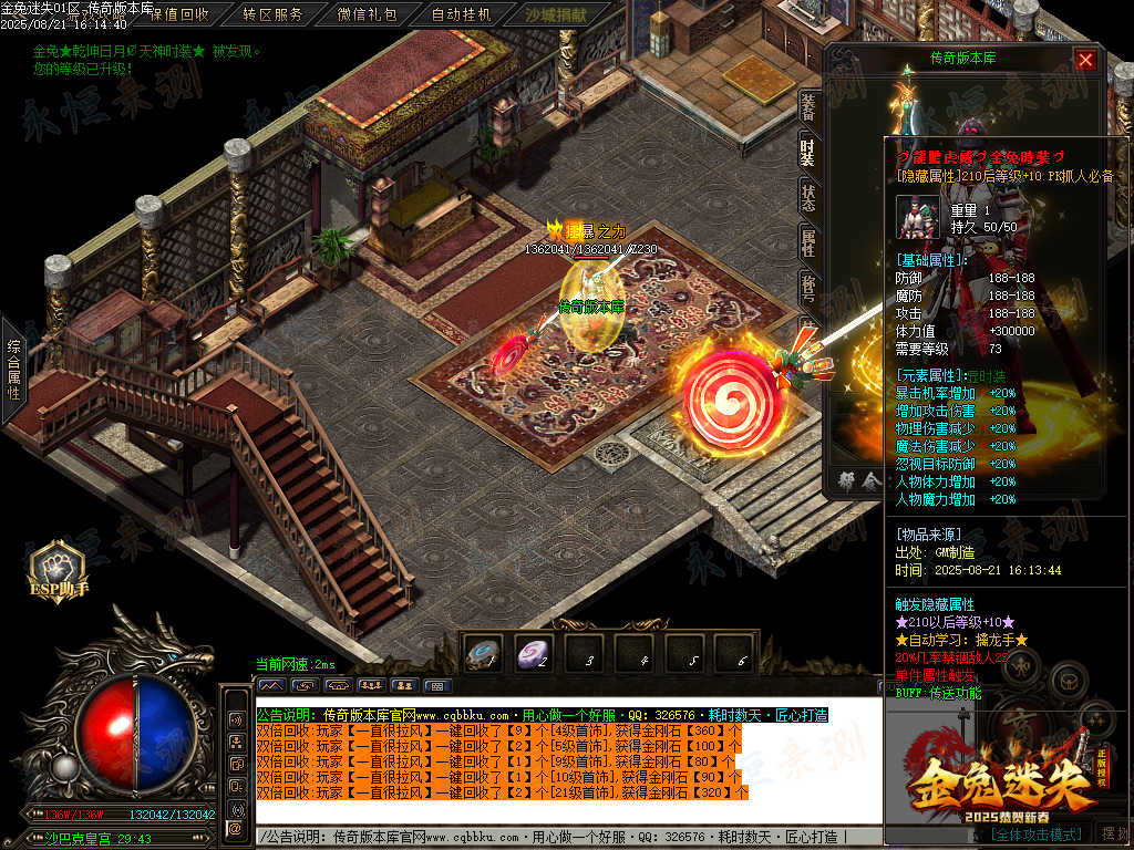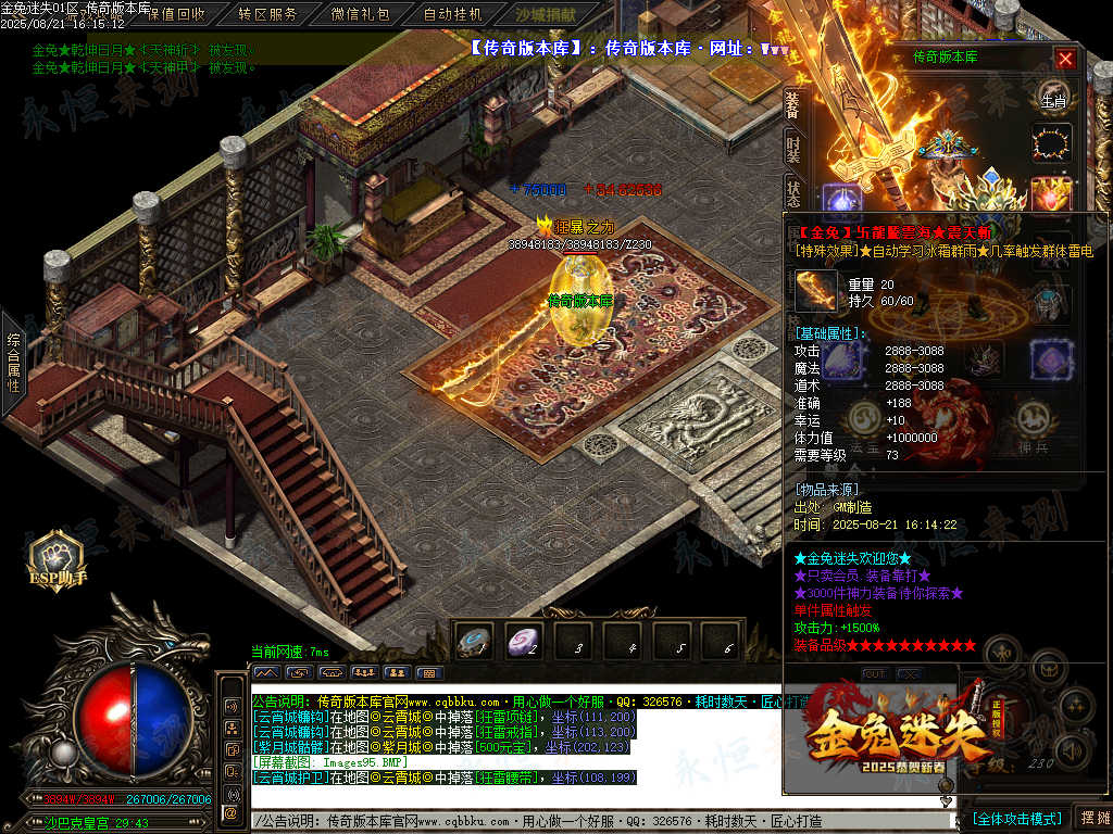 传奇版本库中,金兔迷失正版授权版本重磅上线,品质有保障。核心无限刀设定带来极致攻速,刀刀暴击爽感拉满。智能假人模拟真实玩家行为,战场热闹不冷清;ESP插件精准标记怪物与资源,助你掌控战局。搭配自动回收功能,轻松处理冗余装备,让玩家专注热血征战,尽享畅快传奇体验。