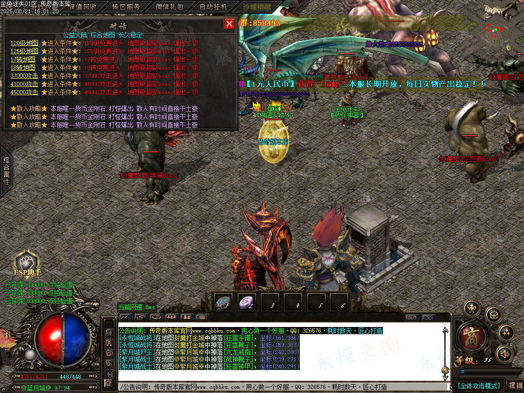 11,本服财富魔王爆一切装备,每个地图都有,刷新时间120分钟
