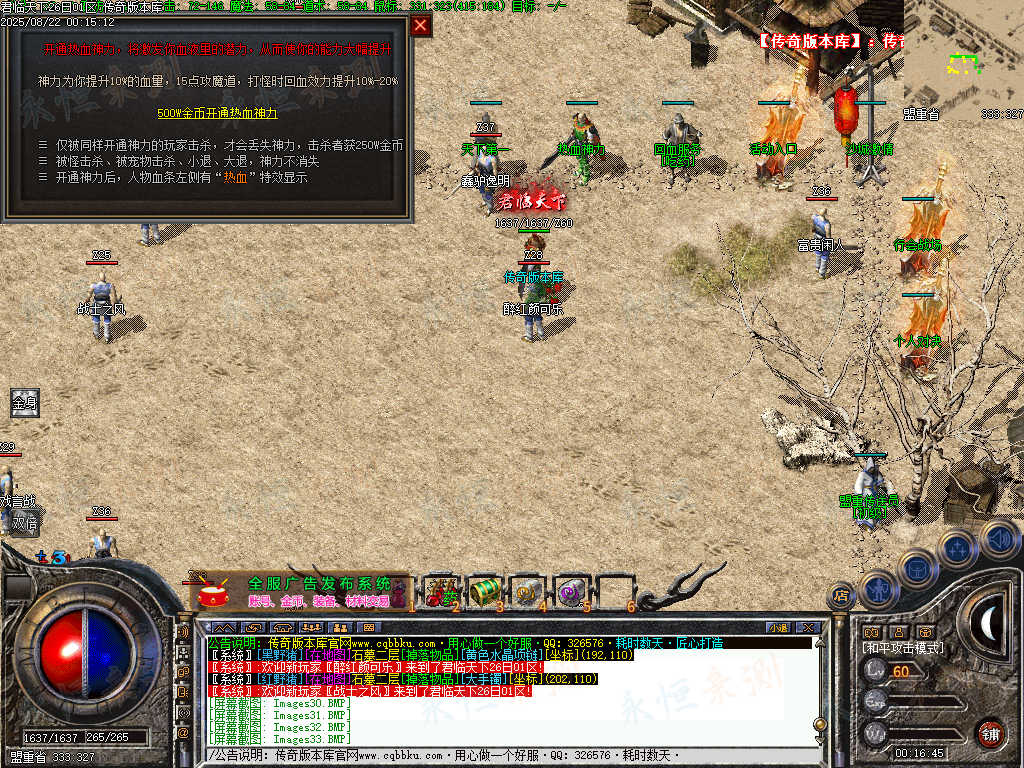 【开区介绍】:每天开放4个区,新区3天后合区攻沙,给与玩家足够的发育时间
