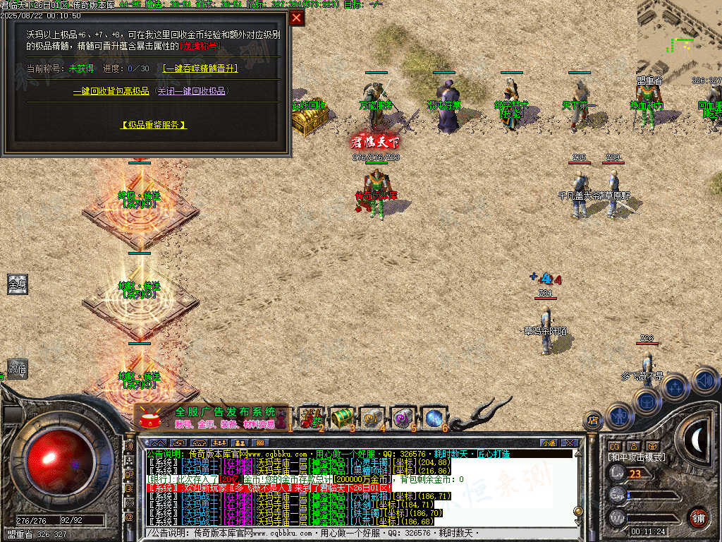 01-708独家精修1.76君临复古金币小极品三职业客户端-带光柱-大背包-自动回收-自动拾取