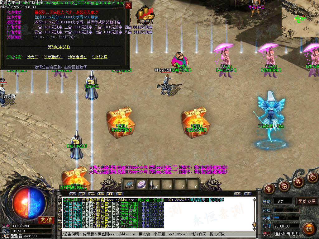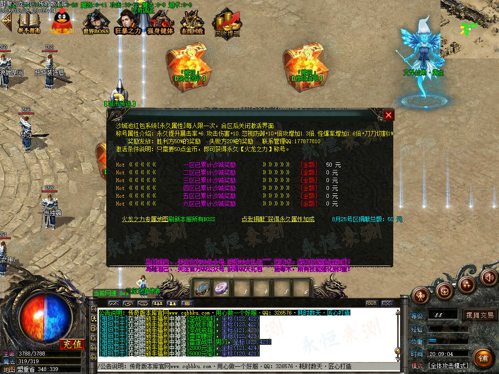 新区拿沙奖励288米现金-其他区以拿沙NPC为准.登录器同时会注明