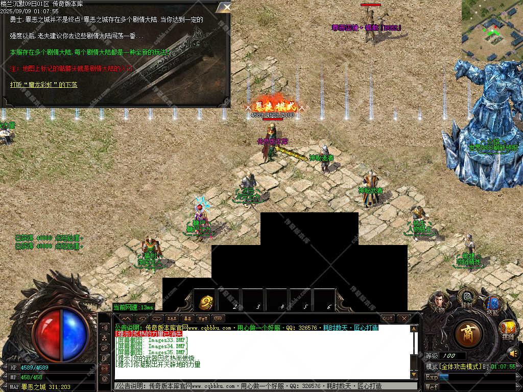 系统:在没有装备的基础上,请不要尝试越级打怪.本服中后期怪物比较强力.