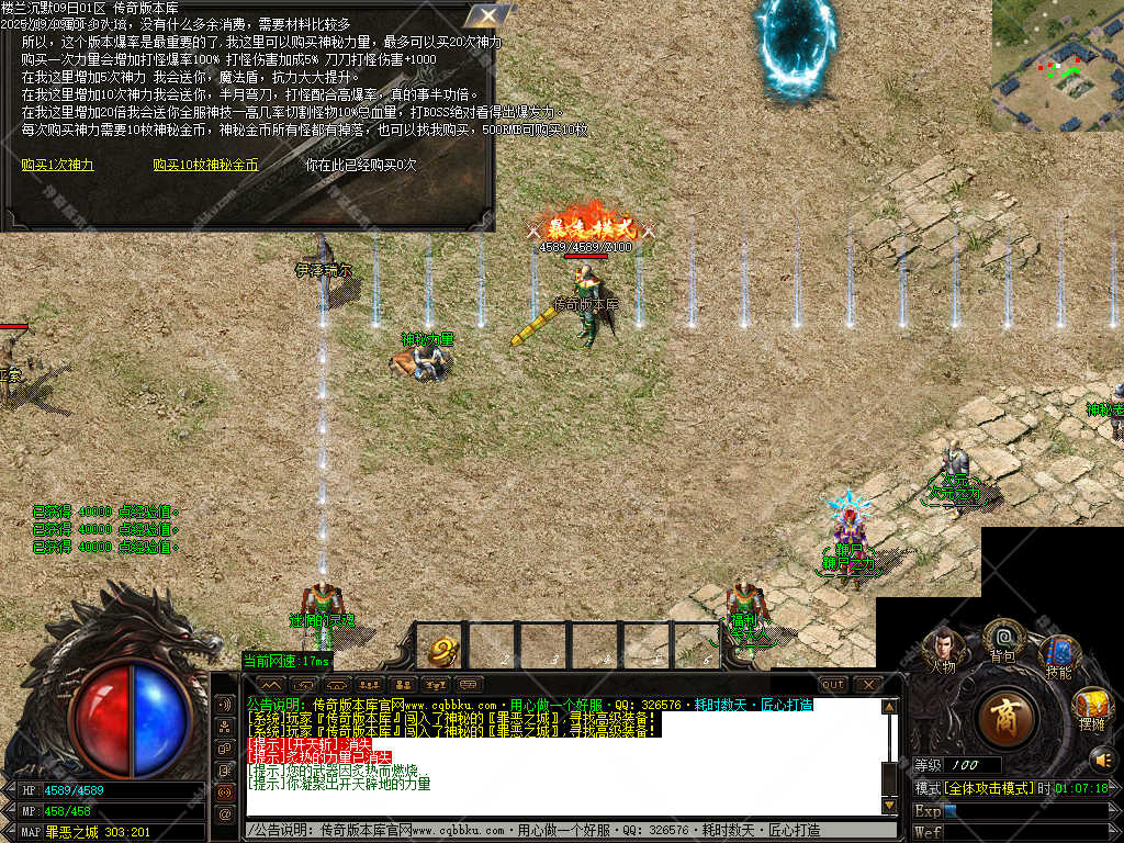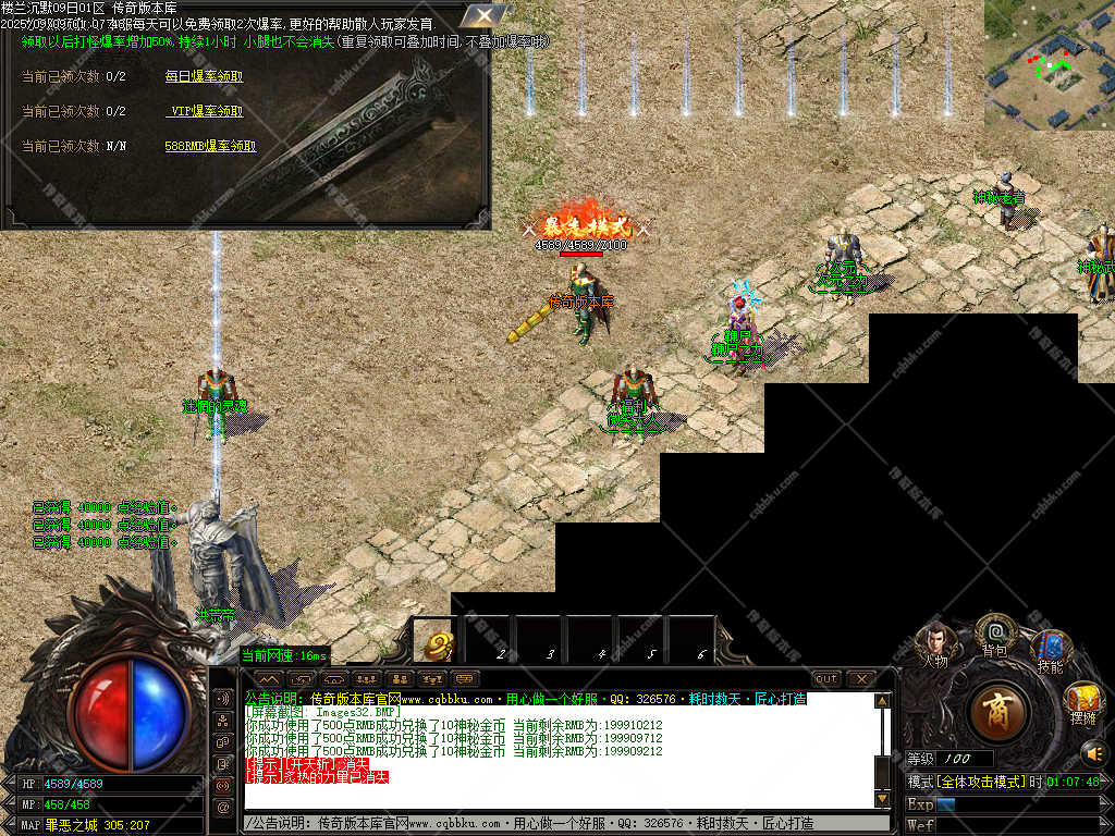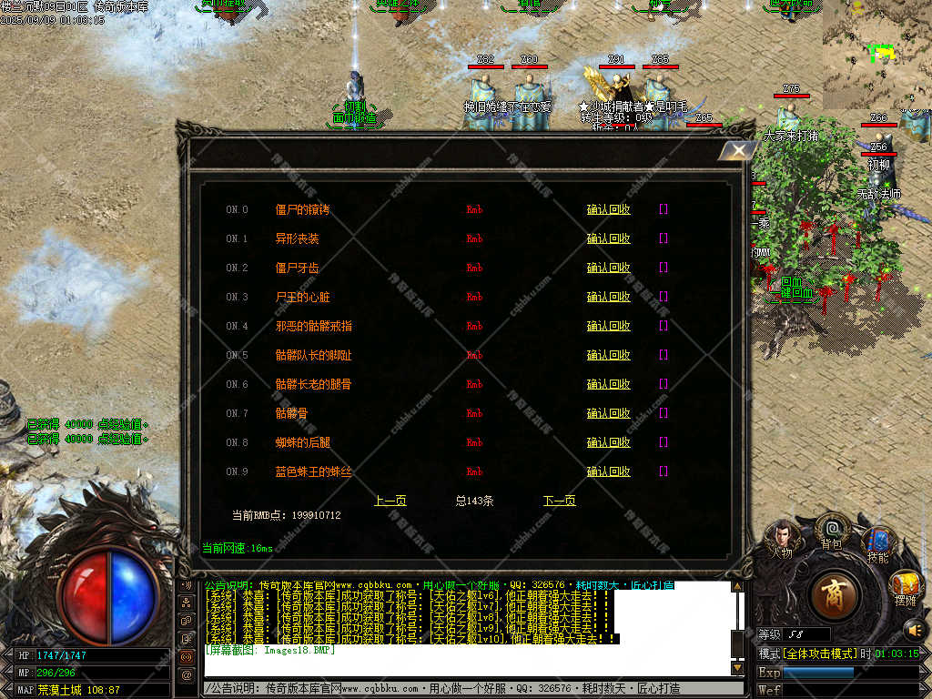 游戏中转生材料、天佑金币、英雄印记所有怪物都有几率爆,等级越高的怪物,爆率也就越高!