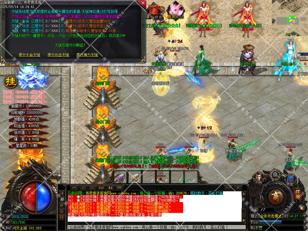 (!):次终极武器衣服(神)以上带倚天辟地,秒天秒地秒空气,吸怪+十步一杀+倚天辟地,直接群攻怪