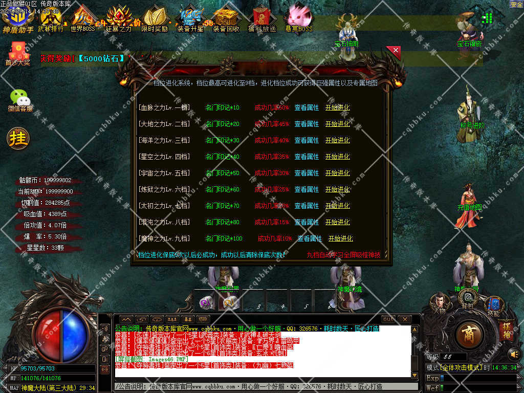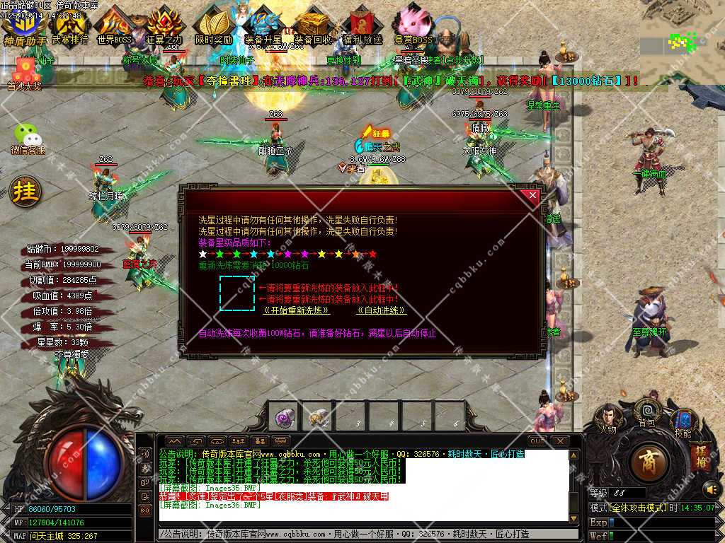 (!):本服重点!本服所有装备必须升星<(装备升星全面提高所有属性,不加星就是弟中弟.一个天一个地)