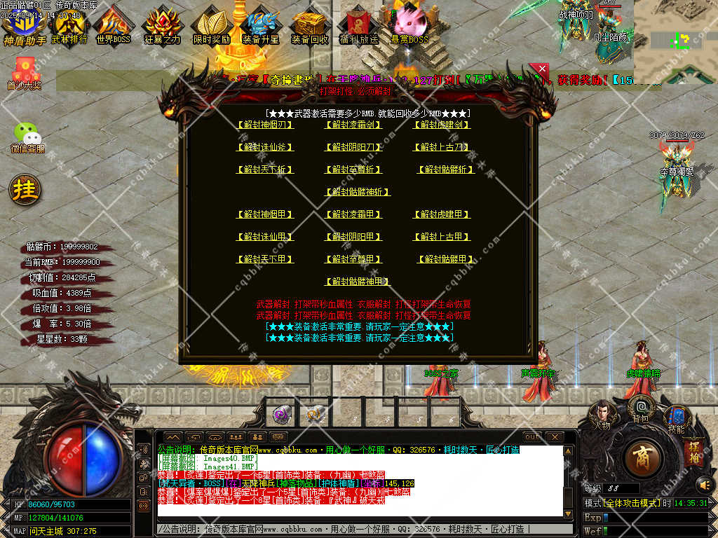 (!):本服重点!本服武器衣服必须1大陆解封<(武器解封加伤害.衣服解封回血)
