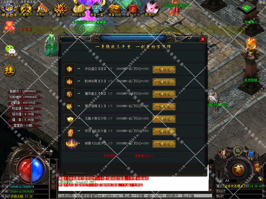 01-742独家正品骷髅大极品神器单职业传奇版本-带假人-SD插件-自动回收 | ||