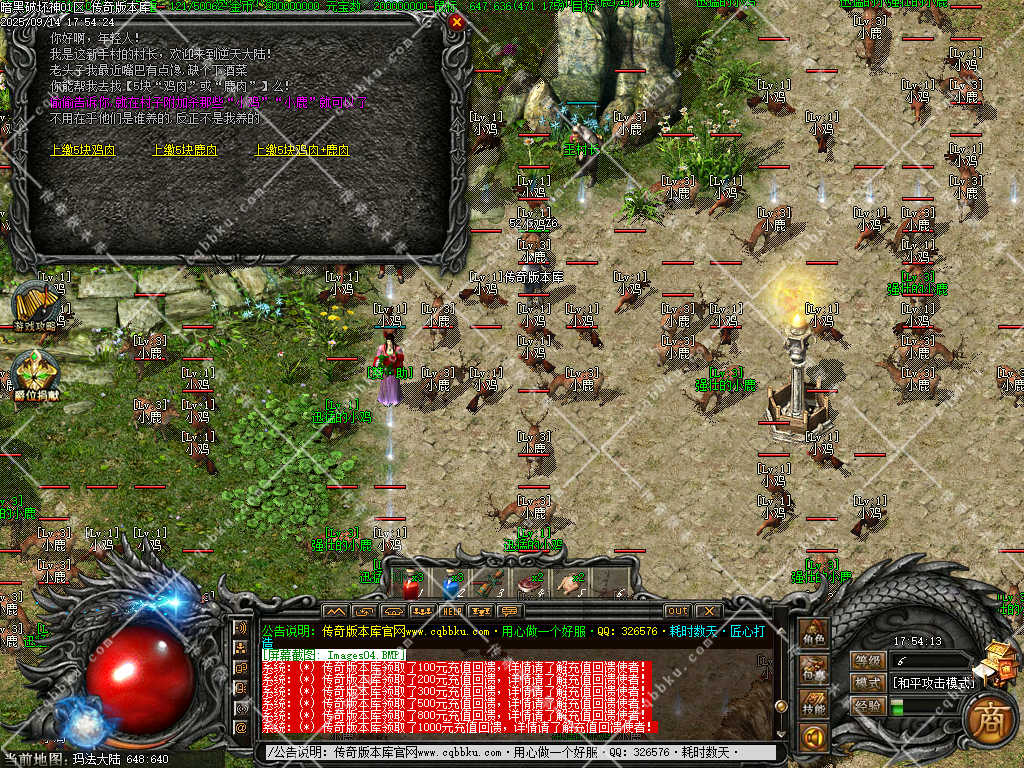 杀猫逐鹿出新村 斩妖除魔入盟重 近观绿涛汇碧海 远眺青山有苍松