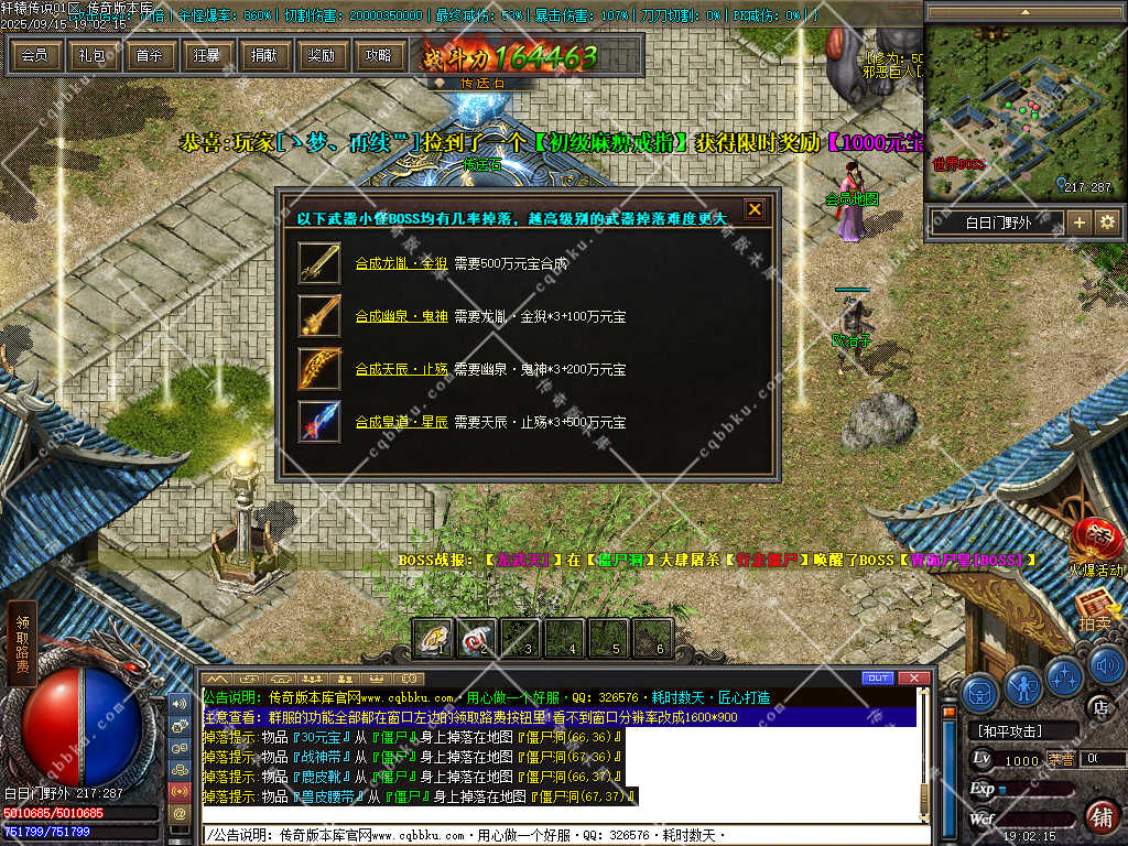 01-744轩辕传说神器单职业传奇服务端-智能假人-自动回收-带光柱