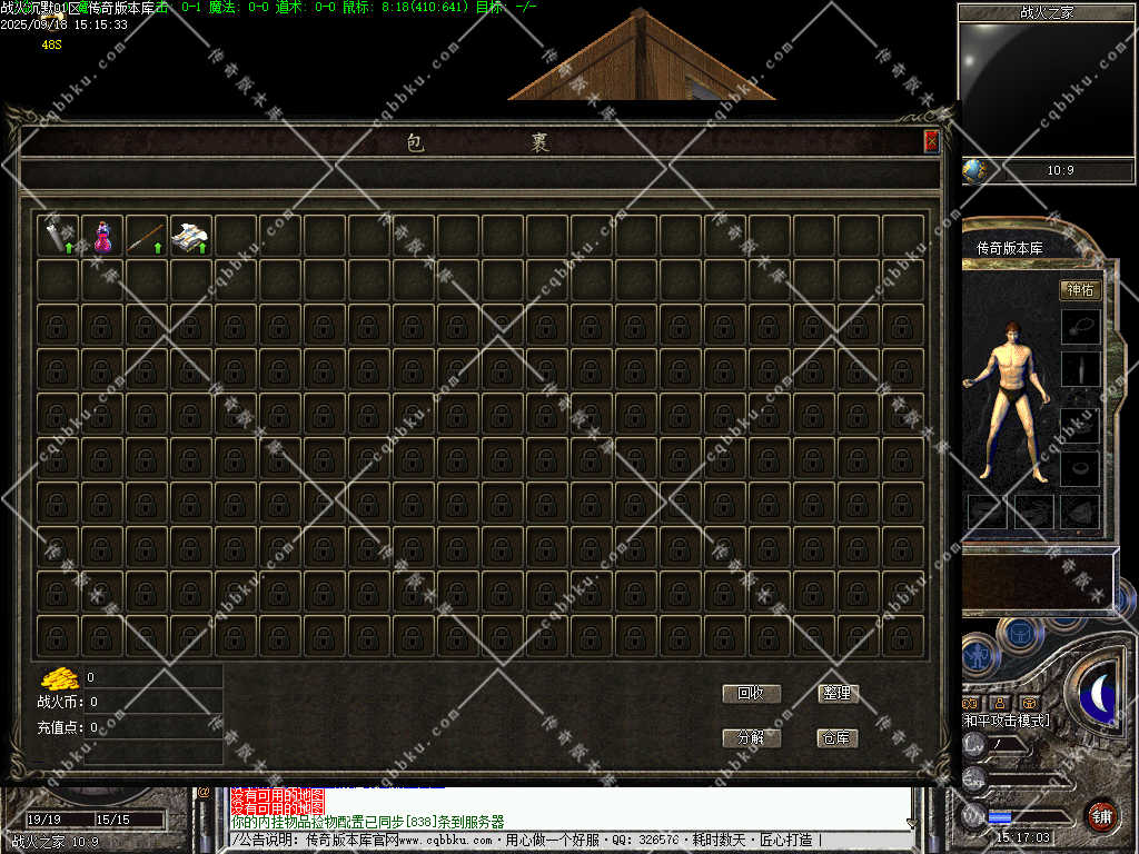 01-746独家1.76战火沉默复古三职业客户端-带假人-成长系统-自动挂机-大背包 | ||
