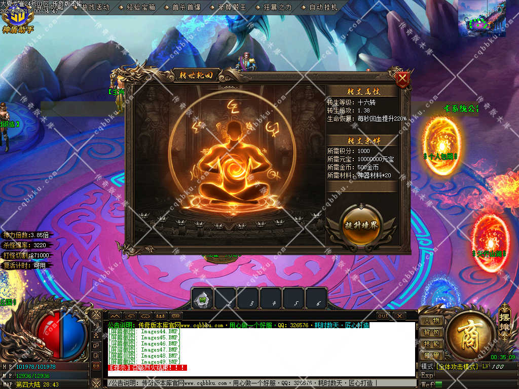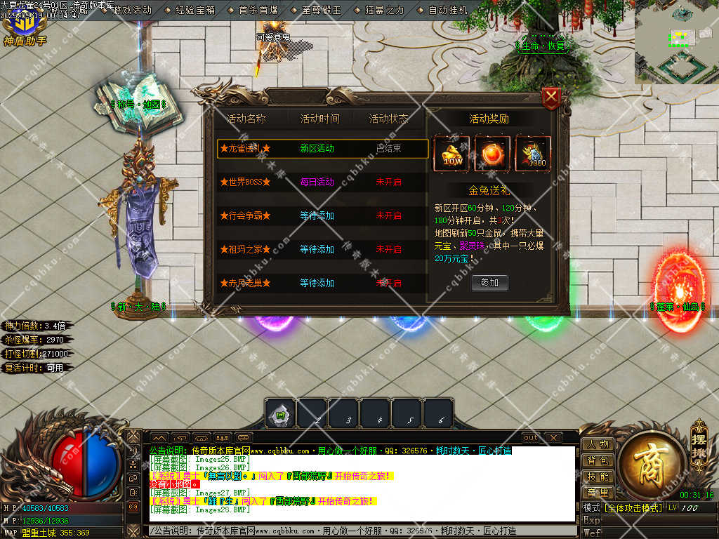 开区模式:每天开放9个新区,三天合区,人气爆棚,激情无限