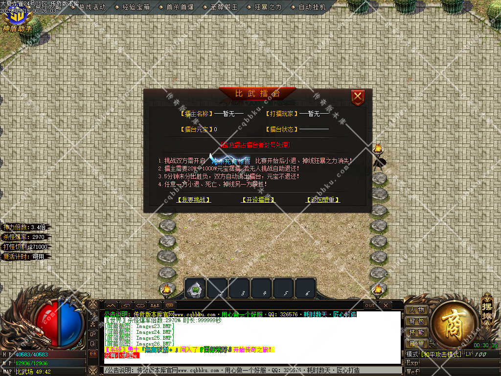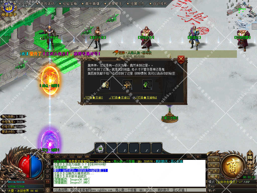 传奇版本库新更大夏龙雀迷失神器单职业传奇服务端!搭载SD插件,运行稳定不卡顿;假人伴战解孤单,刷怪效率拉满;切割称号解锁专属战力,强化战斗体验。复古热血感十足,速来开启传奇征程!