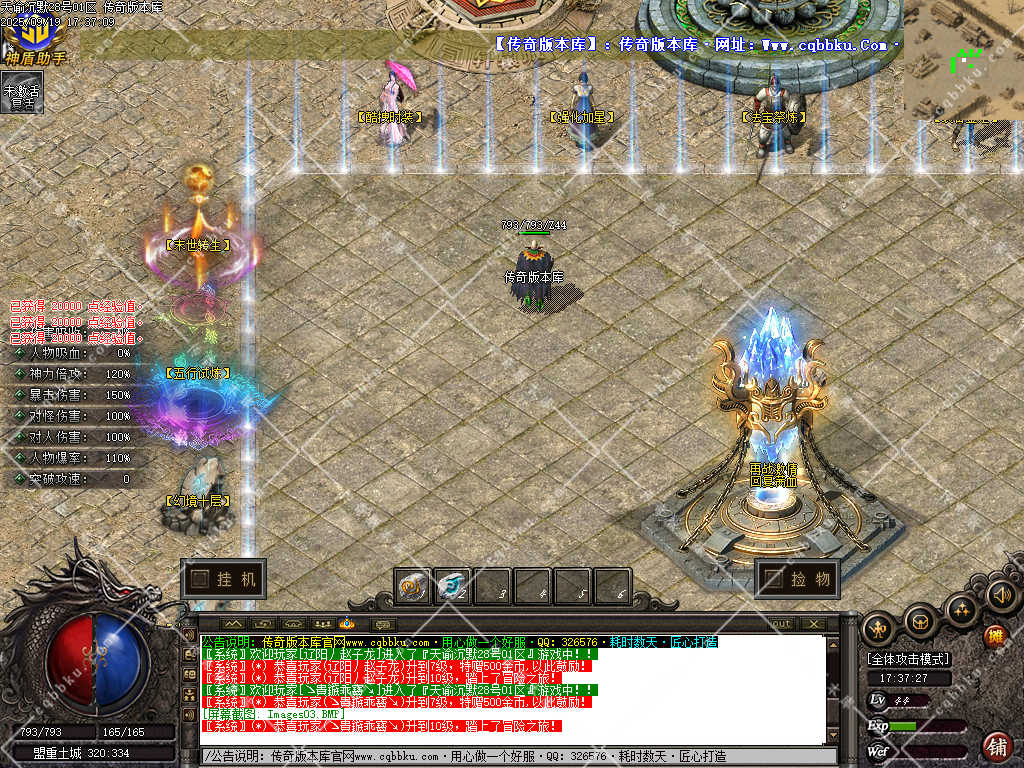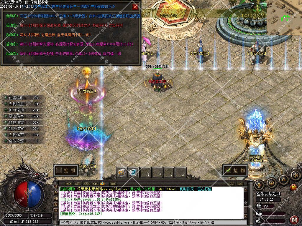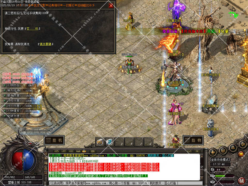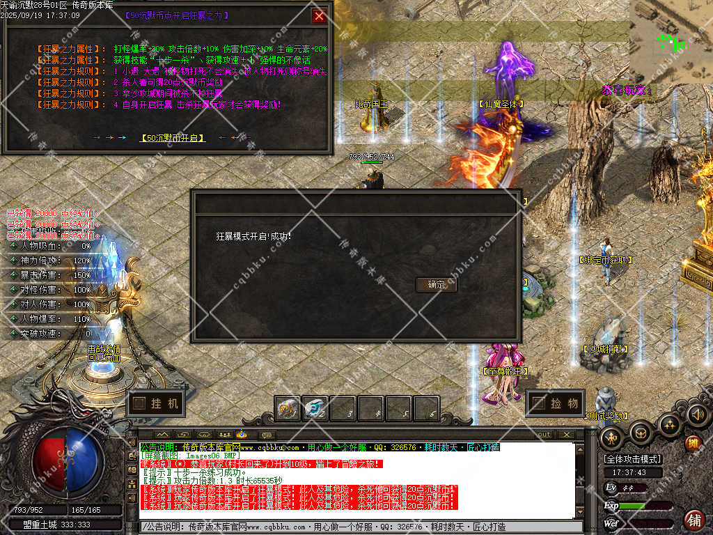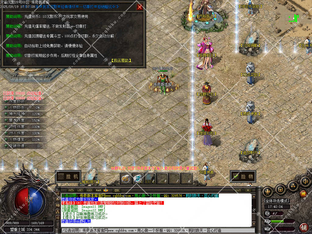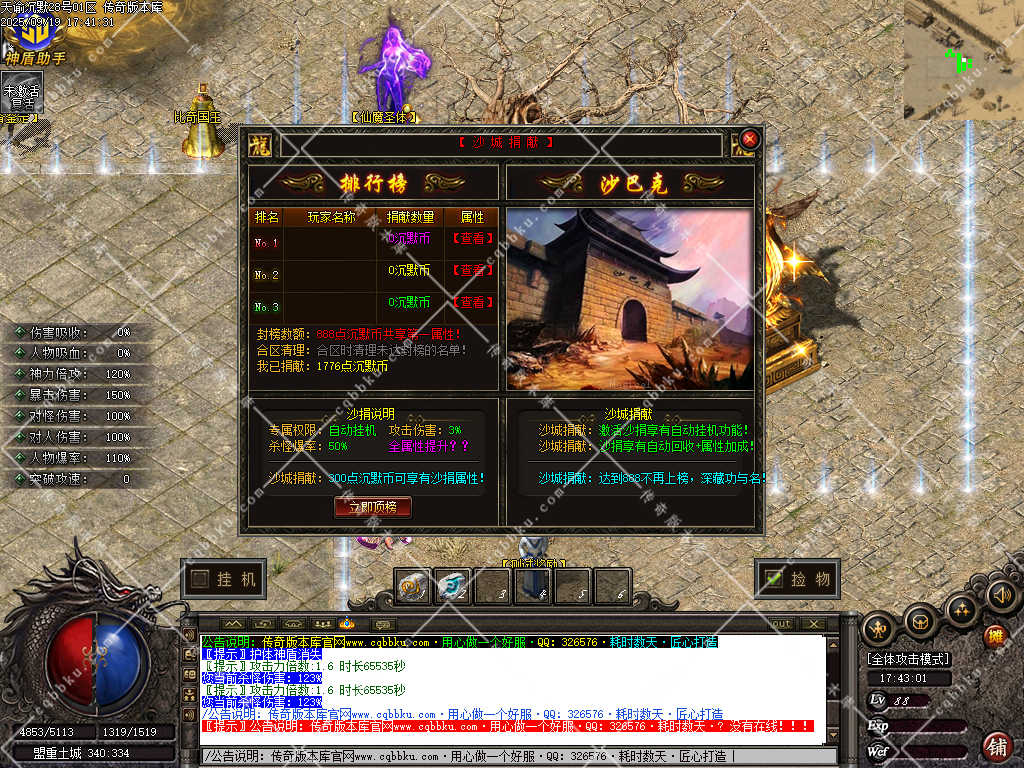 3. 成为赞助会员,爆率 +50%,攻击30-30,神力倍攻+10%,攻击,体力各 +10%,以及前期开荒装备!