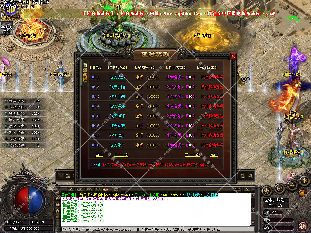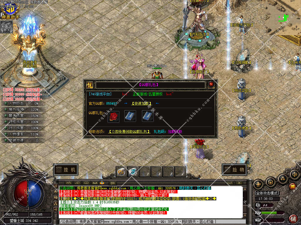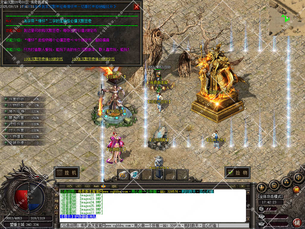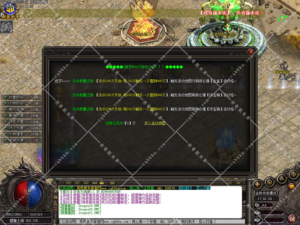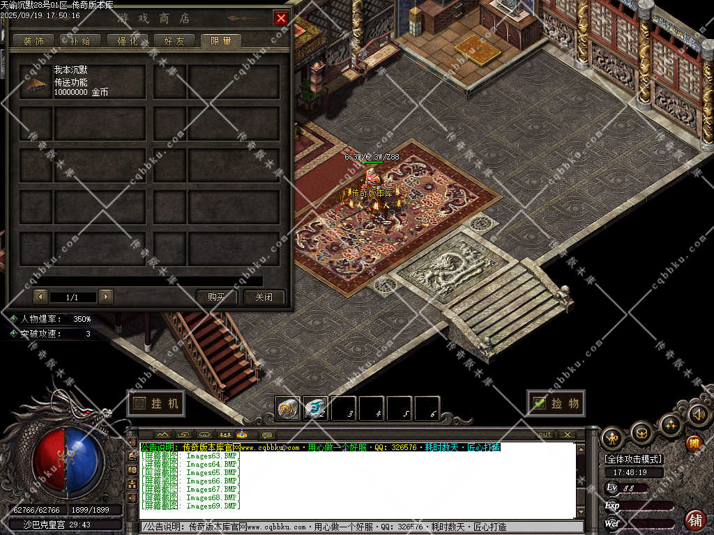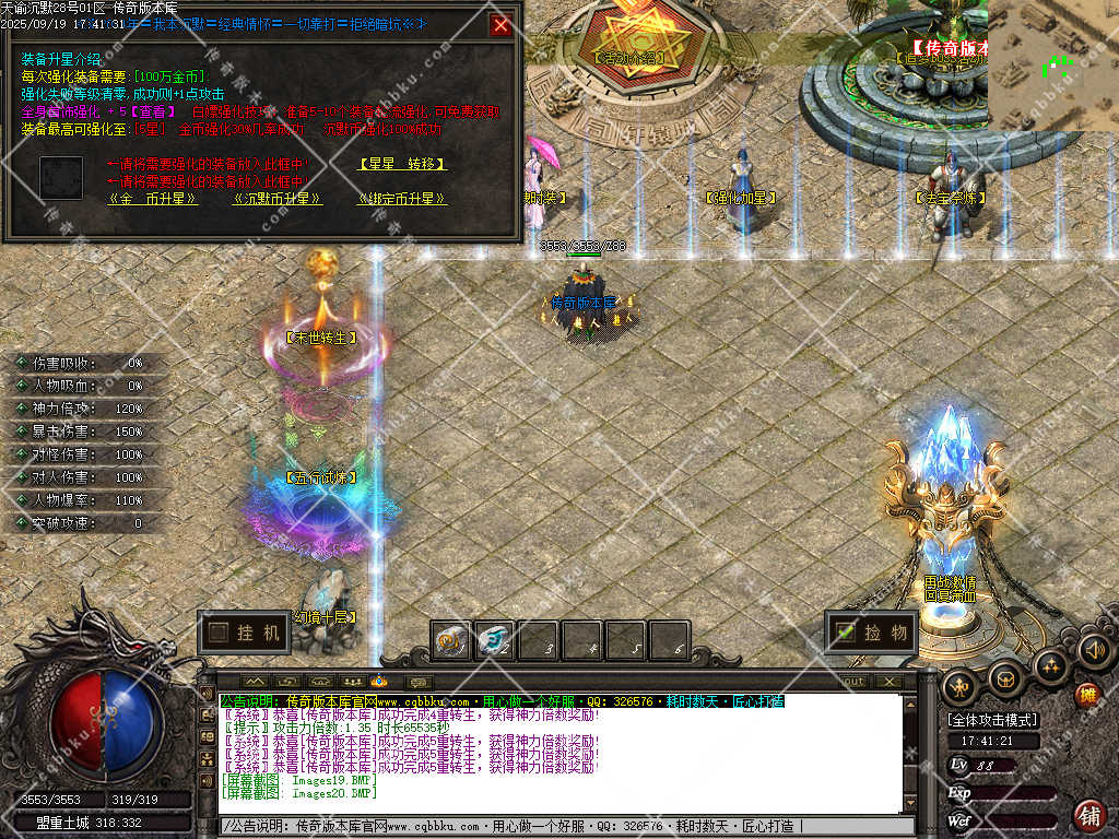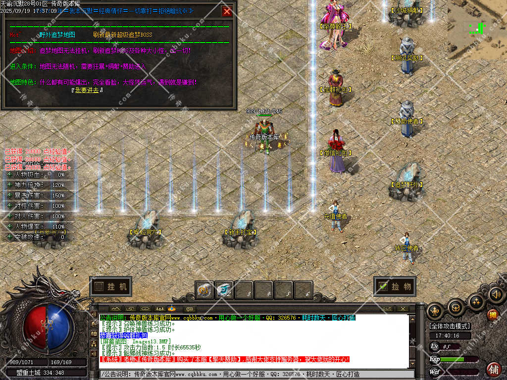 3. 成为赞助会员,爆率 +50%,攻击30-30,神力倍攻+10%,攻击,体力各 +10%,以及前期开荒装备!