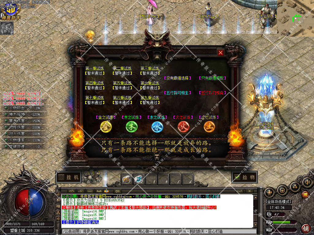 7. 等级够了,【五行试炼】选择自己开荒属性,属性是只有搭配的,玩家自己搭配!