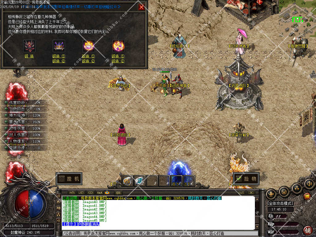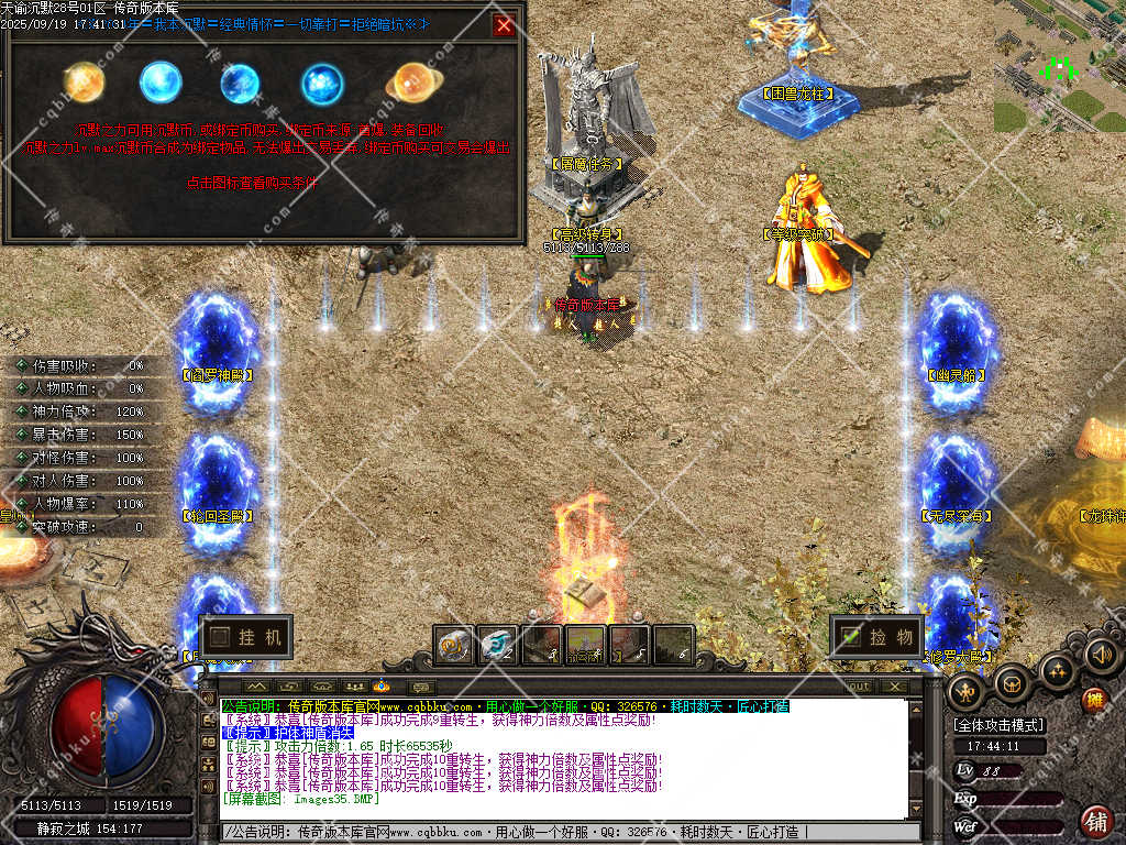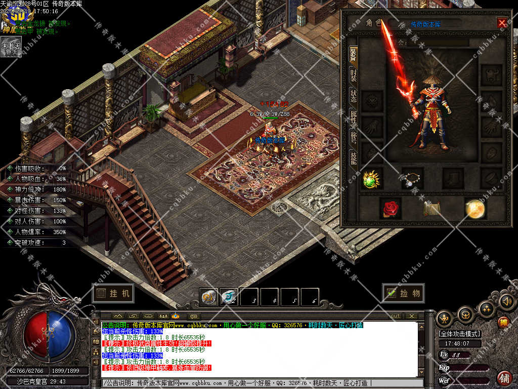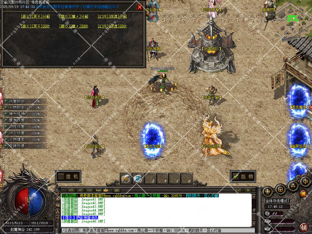 游戏宗旨:无论您是土豪 白嫖 在本服都可以完美展现价值观 “土豪快人一步”“所有特殊法宝 特殊单件 都靠爆出 并且所有boos都有爆率