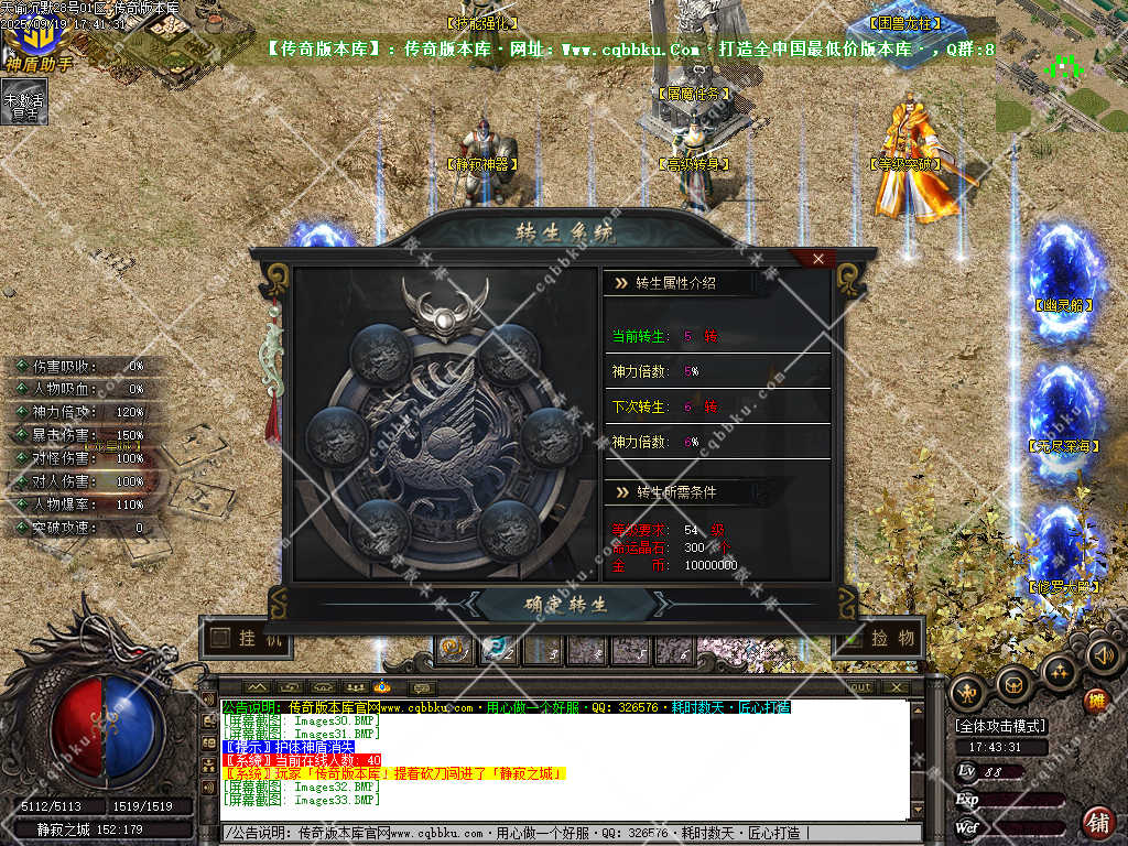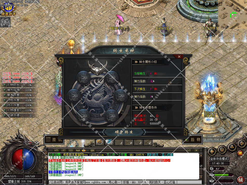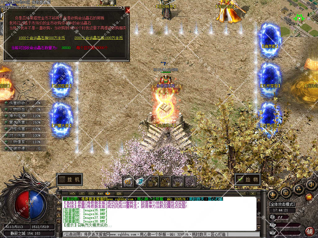 6. 转生,需要材料【命运晶石】增加神力倍功