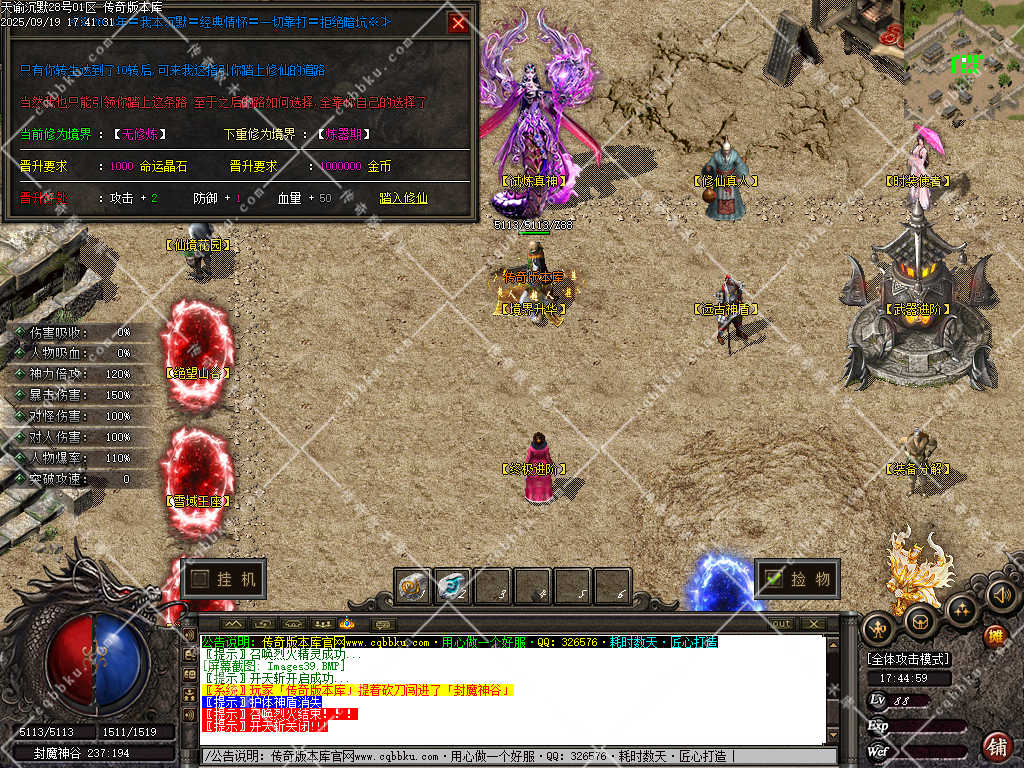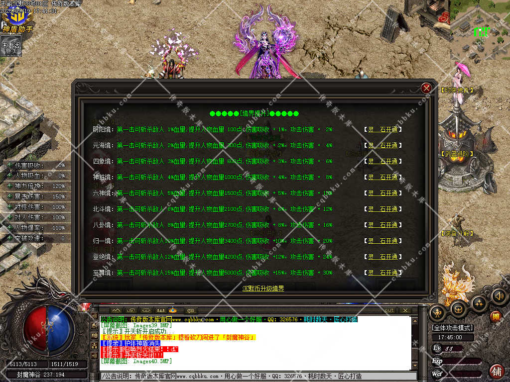 14. 境界升华,需要材料【灵石】即可拉满。至尊境几率群体切割2*2范围内怪物2%血里