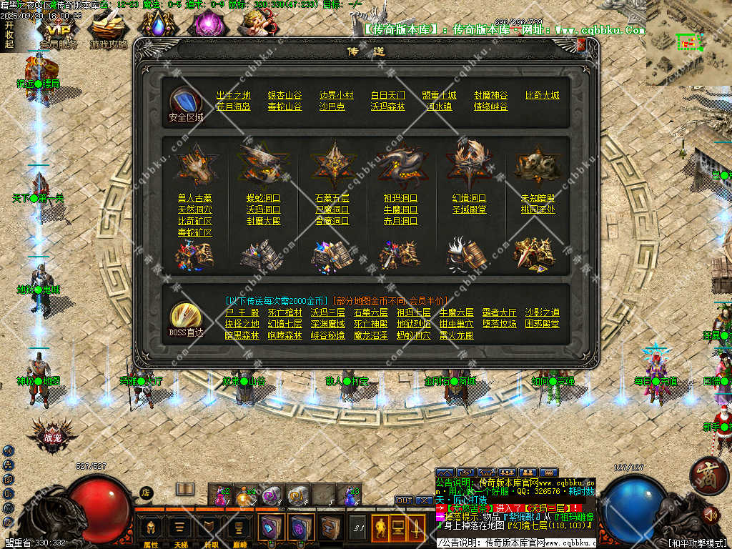 1.经典地图最后一层刷新福利BOSS,刷新时间一般为90分钟左右。