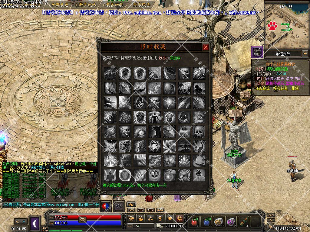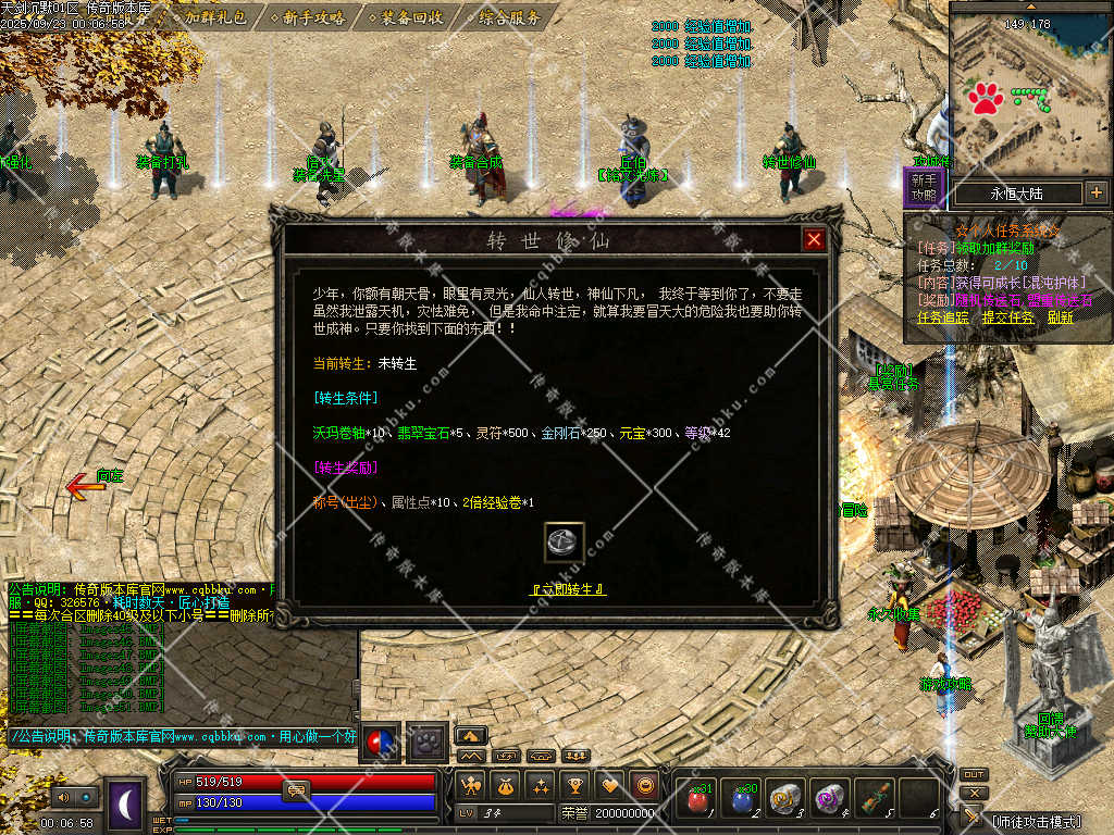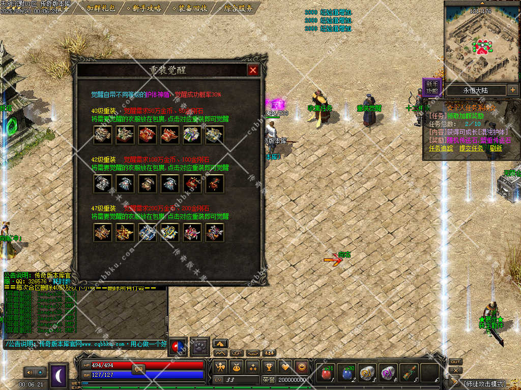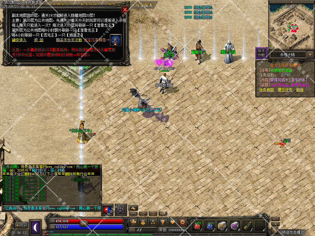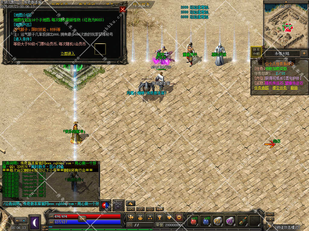 玩时请认真考虑职业(战士有攻速、道士BB能打BOSS、法师主群怪)。