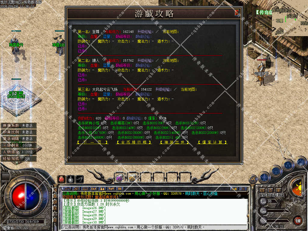 后期:大后期基本上是战士的天下,战士可以群攻所有BOSS,不过需要在二大路把该升级的东西都要升级了才扛得住,后面就是慢慢刷了,85地图满屏BOSS刷不完,谁先去谁就比别人厉害!