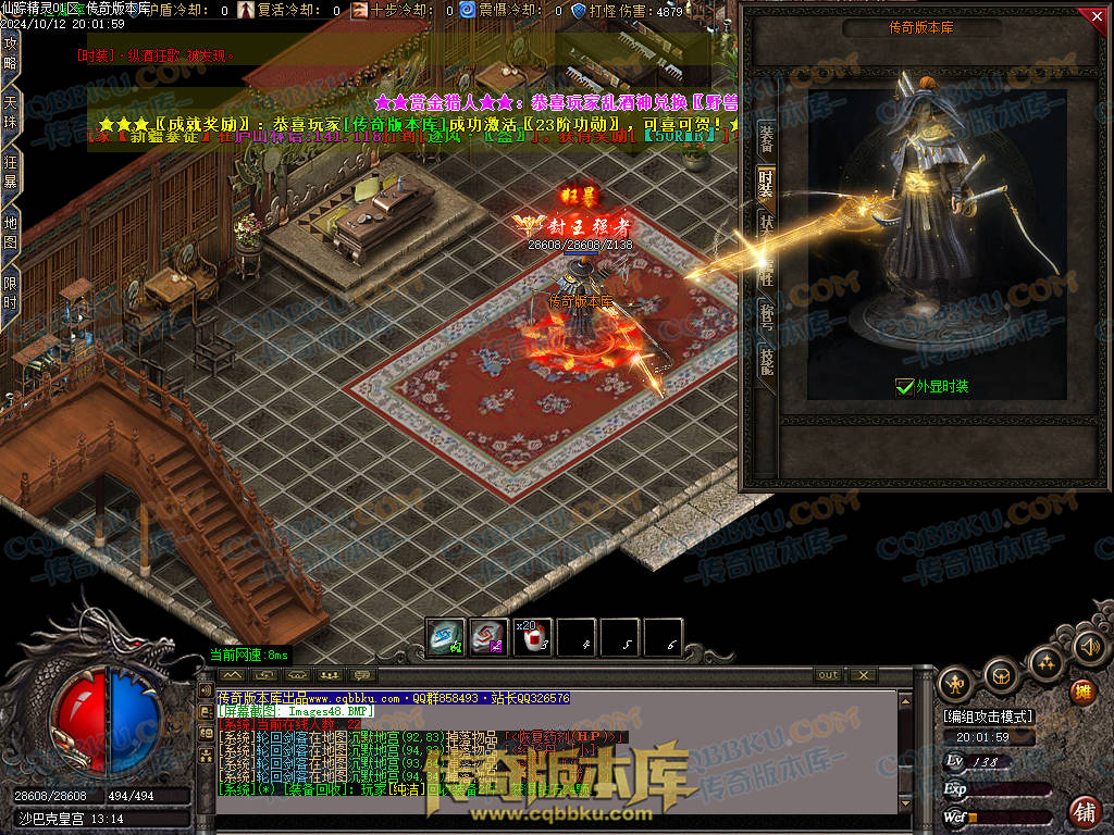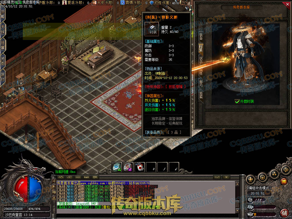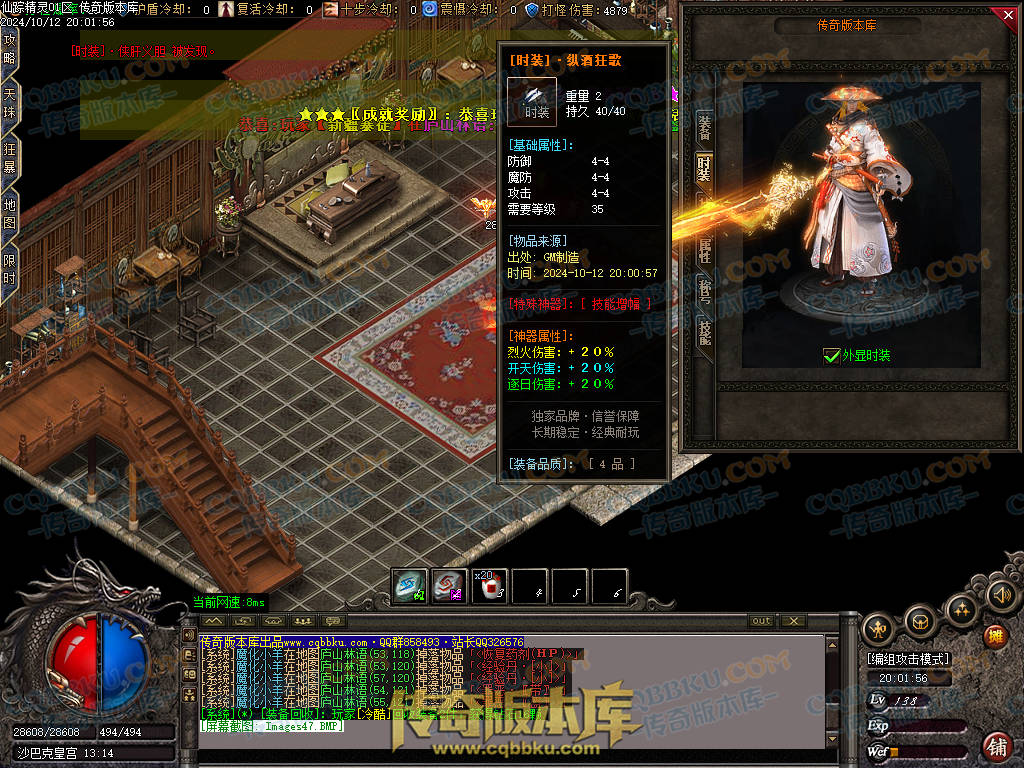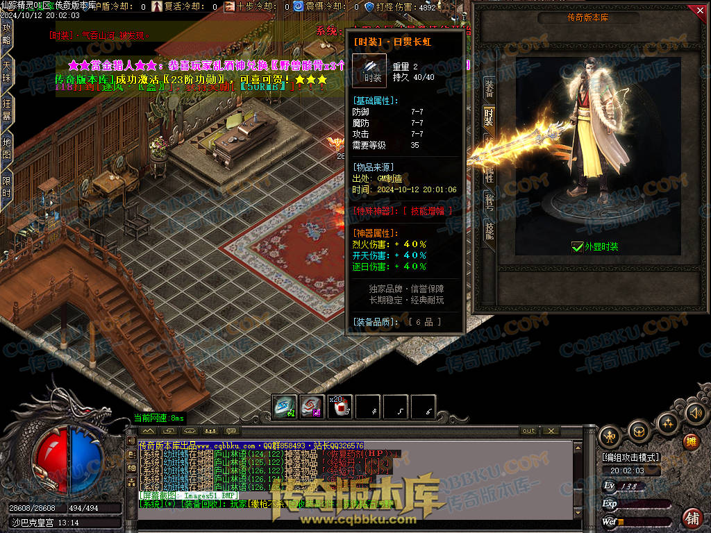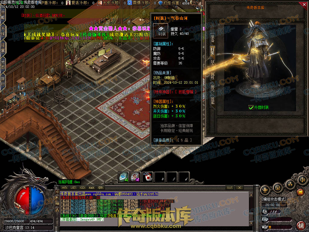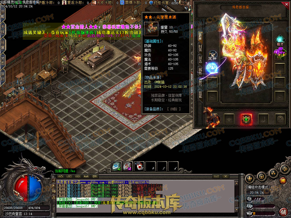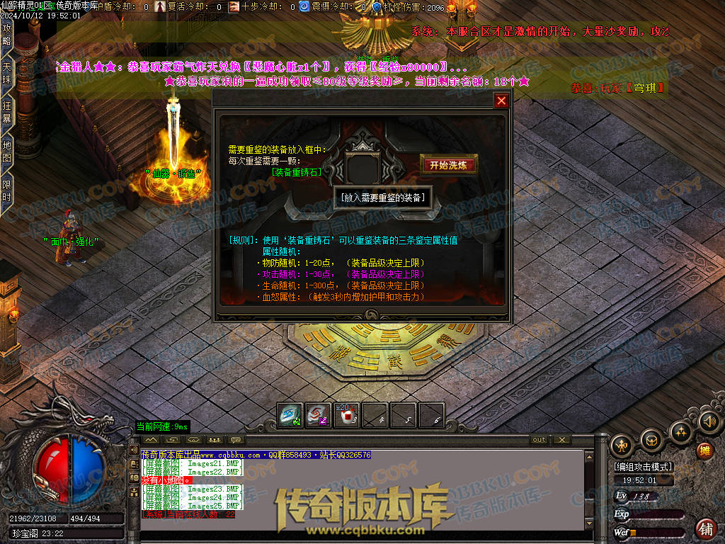 [鉴定篇]:所有装备打出来都会附加三条极品属性,攻击,血里,防御,随机,也可在珍宝阁重洗